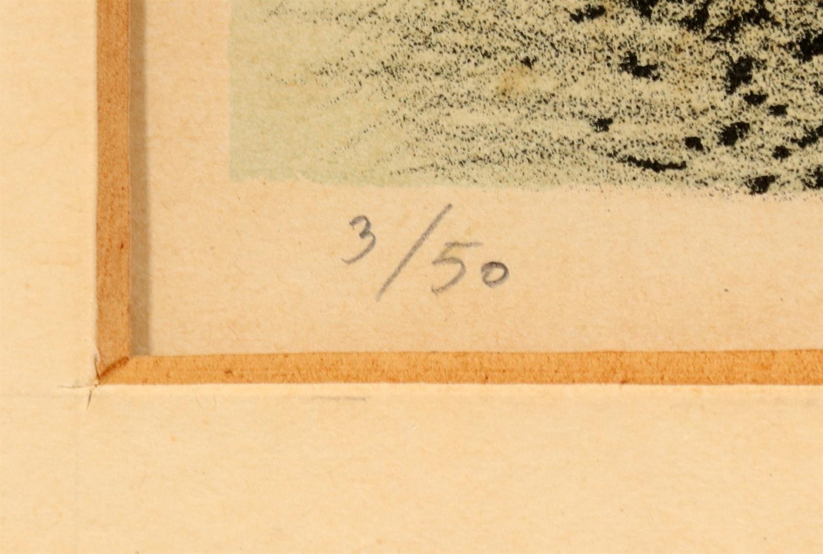 Signováno vpravo dolem tužkou, číslováno vlevo dole 3/50