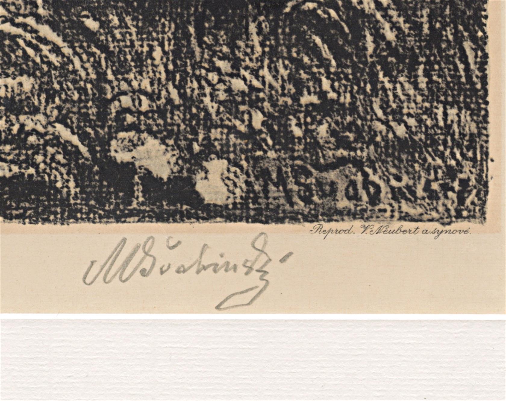 Signováno vpravo dole tužkou, signováno a datováno v tisku vlevo dole, paspartováno, zaskleno a rámováno, Tiskla tiskárna V. Neubert a synové