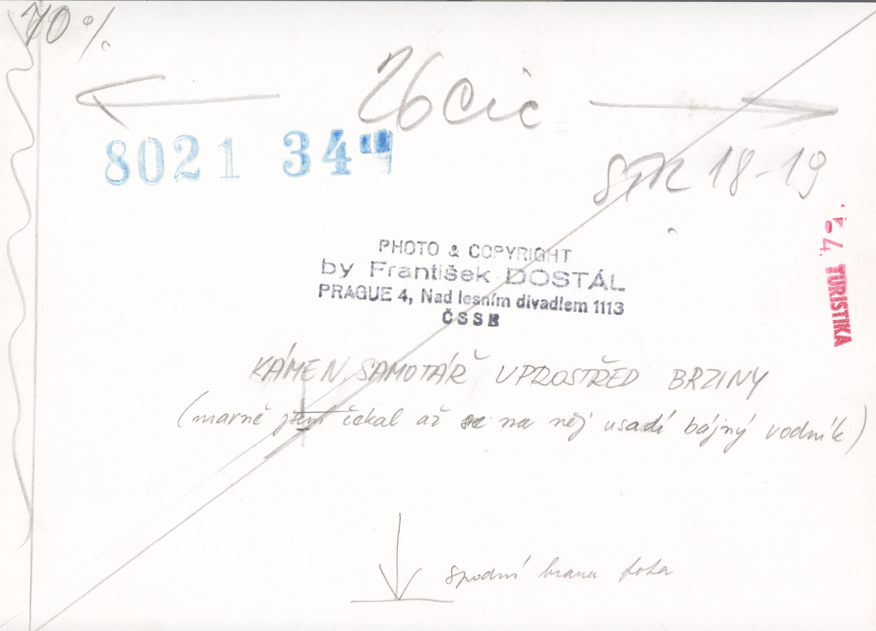 autorská bromostříbrná fotografie, značeno na reverzu autorským razítkem, místopisný popis a razítko vydání v časopisu Turista