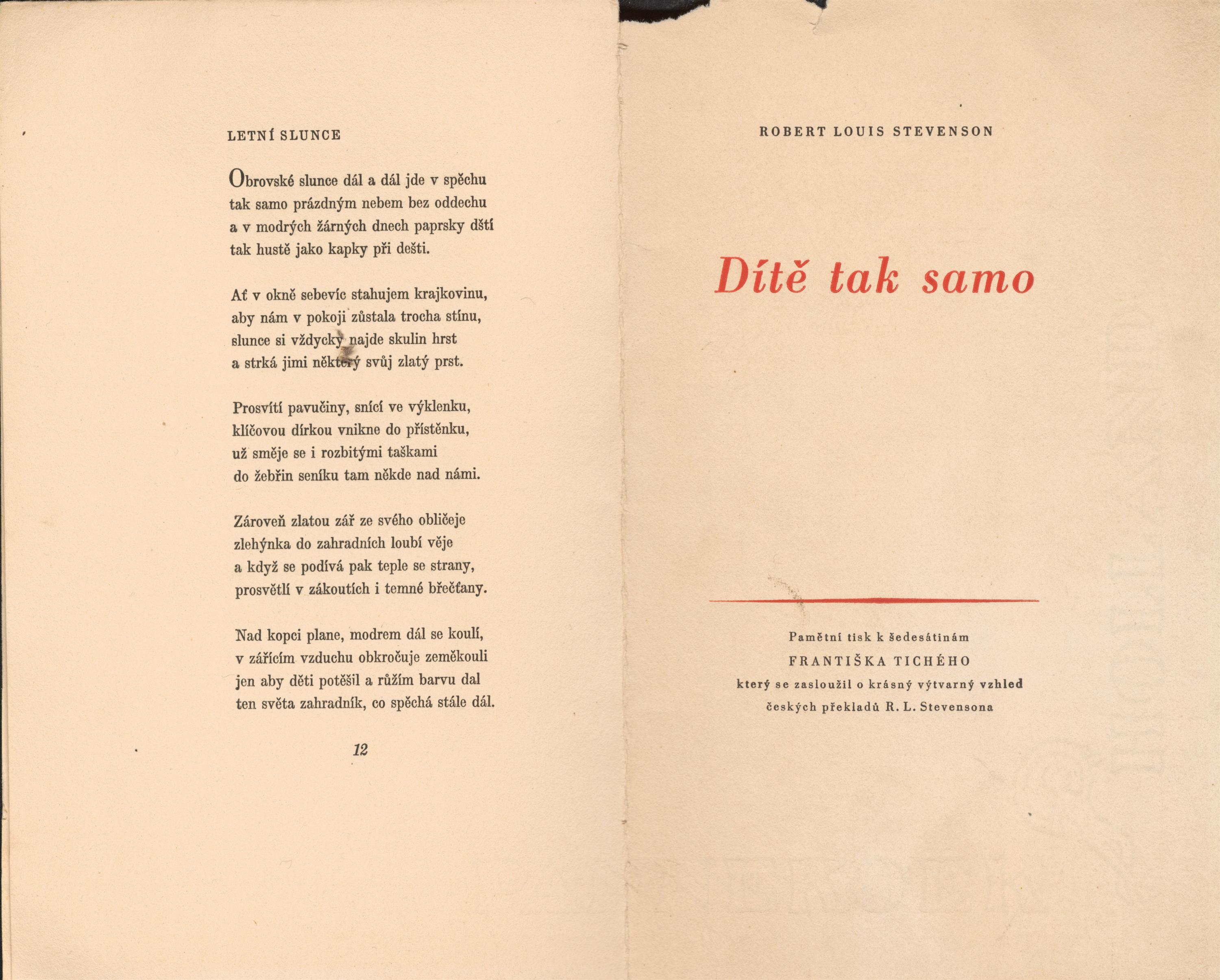 frontispis s originální grafikou Františka Tichého