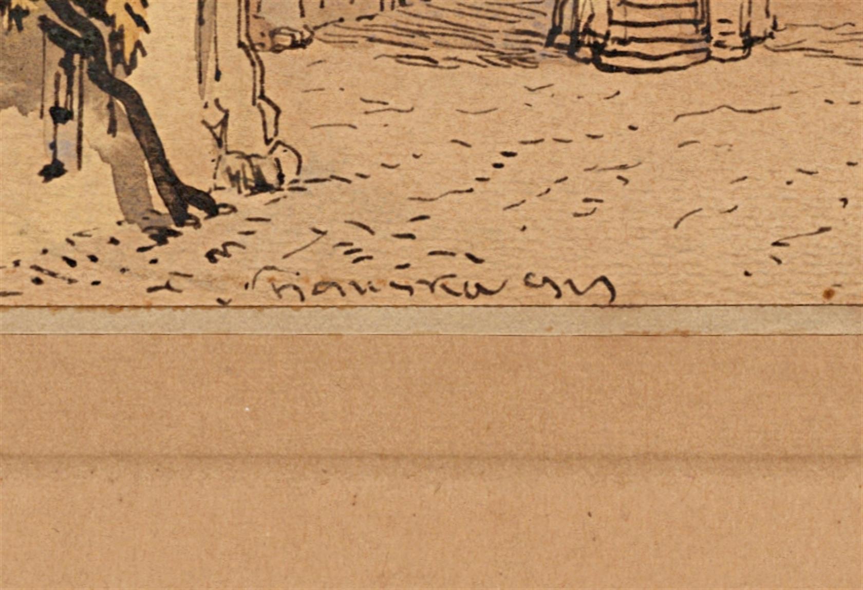 Signováno dole uprostřed. Adjustováno na paspartě, zaskleno a rámováno.