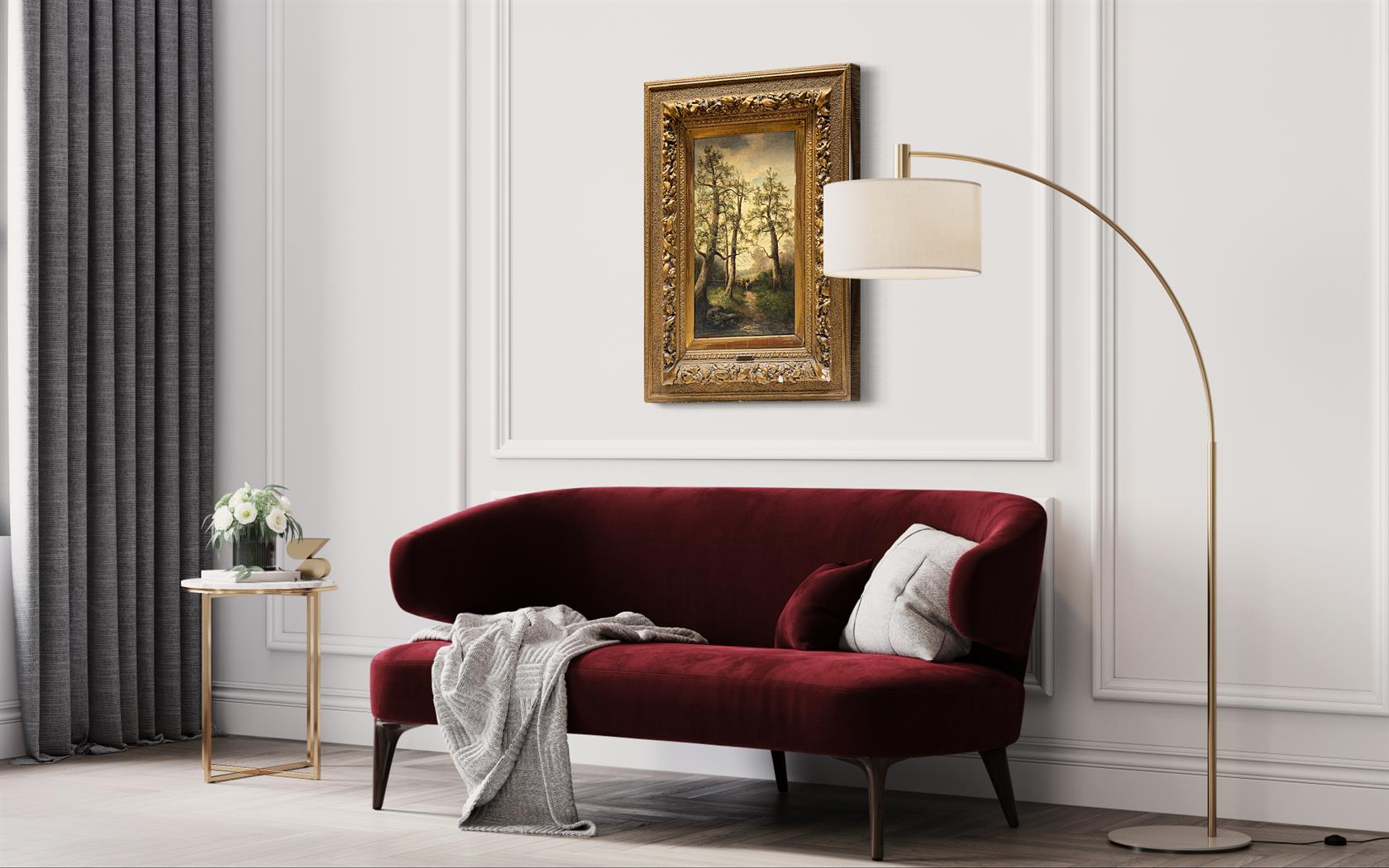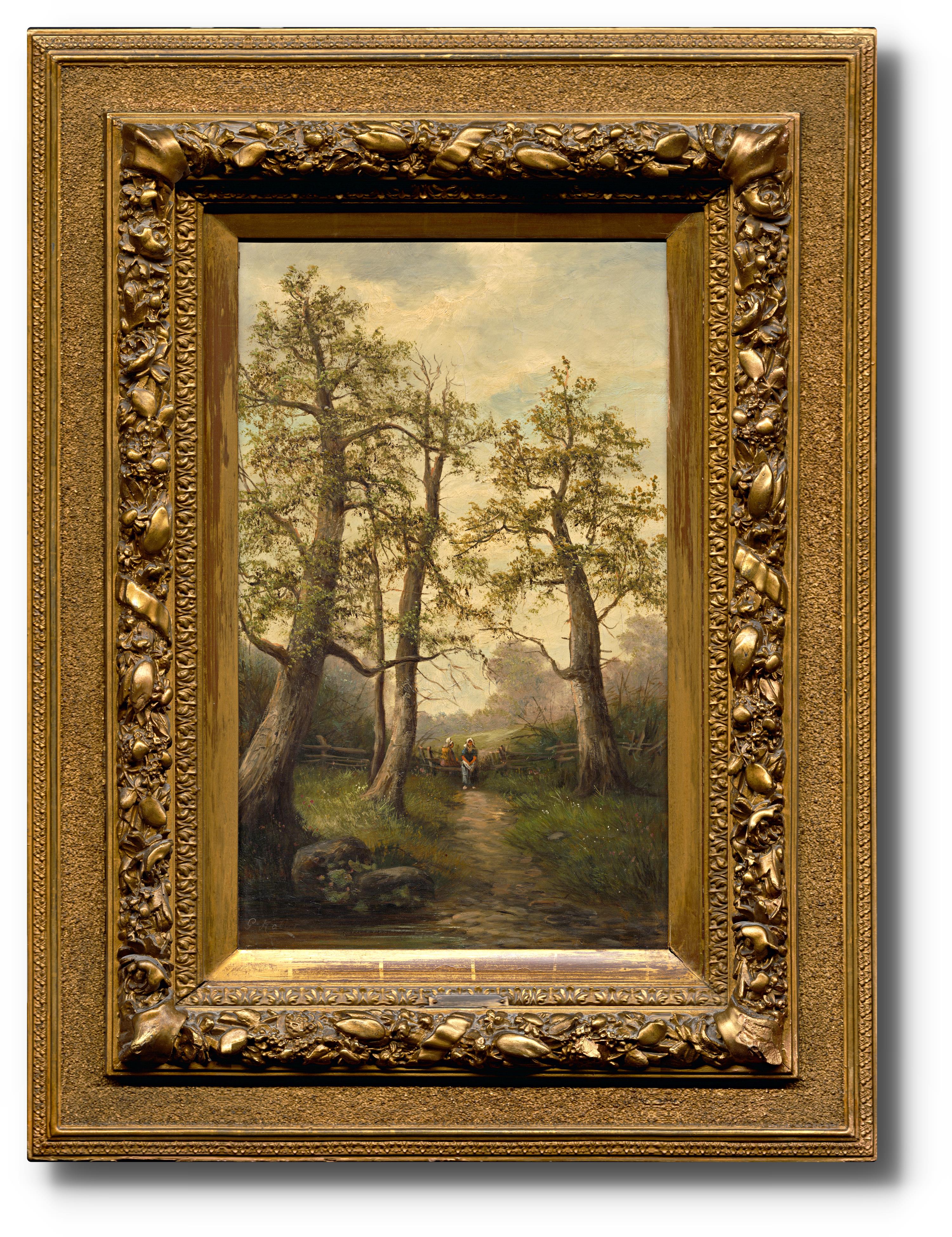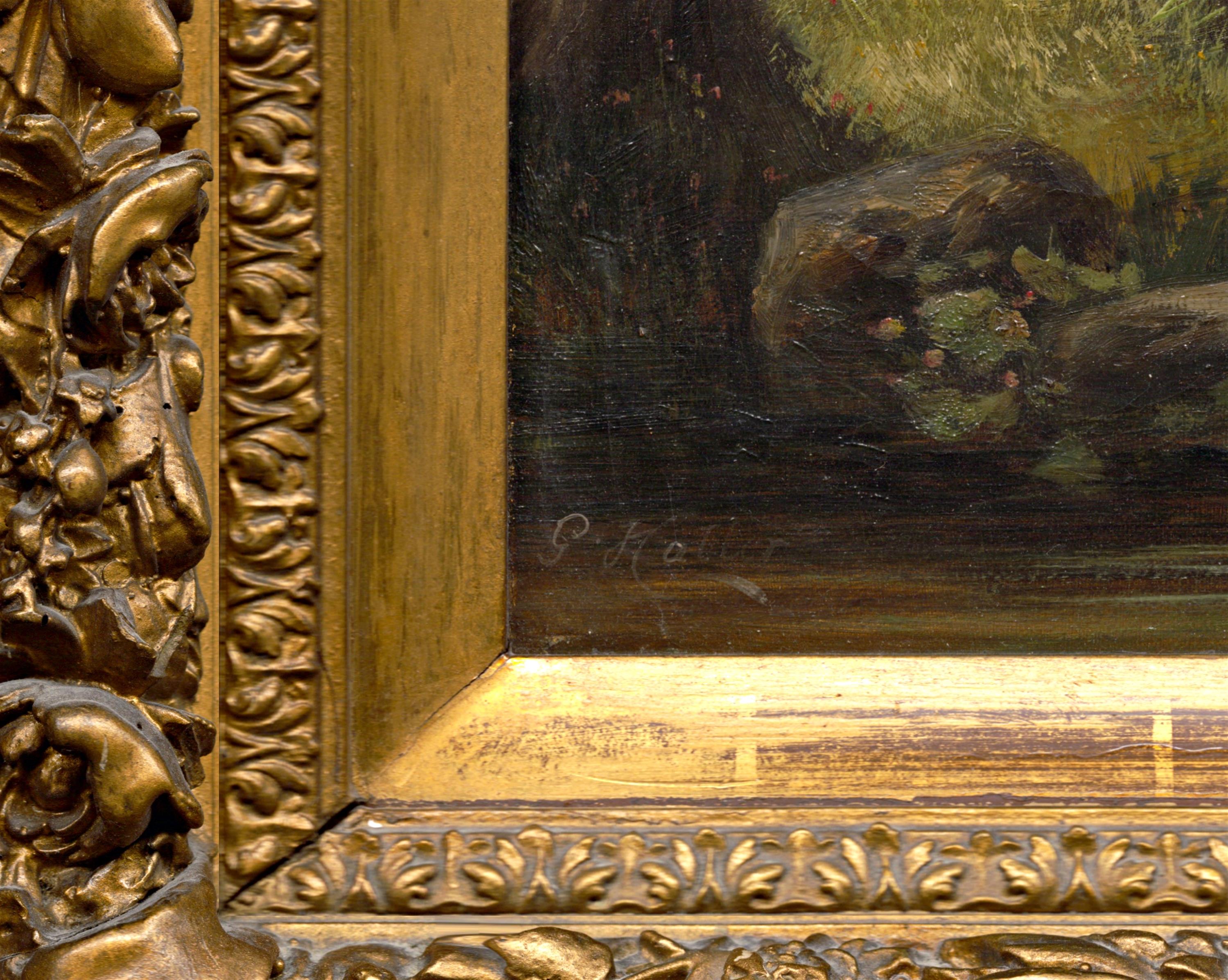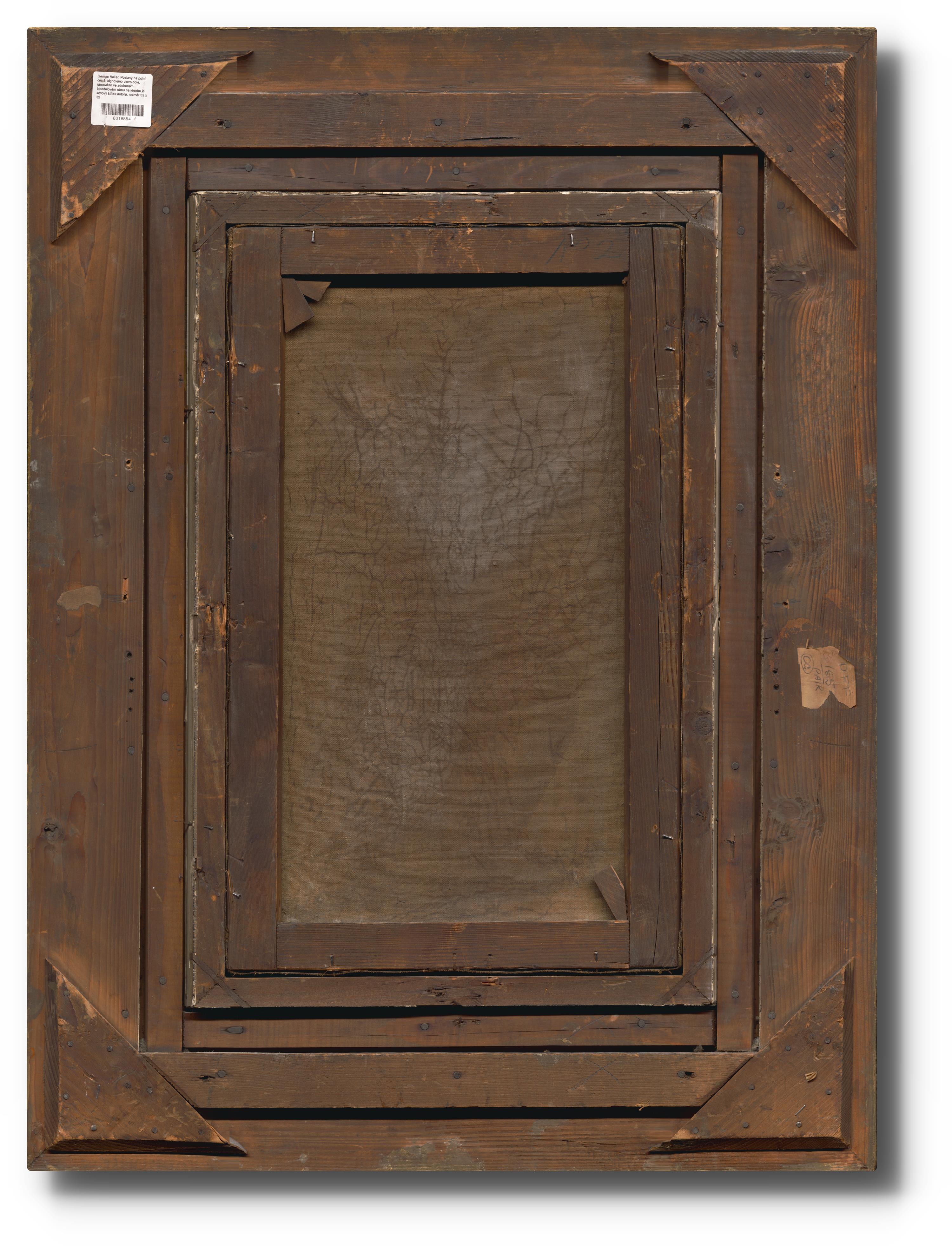 signováno vlevo dole, rámováno ve zdobeném blondelovém rámu na kterém je kovový štítek autora