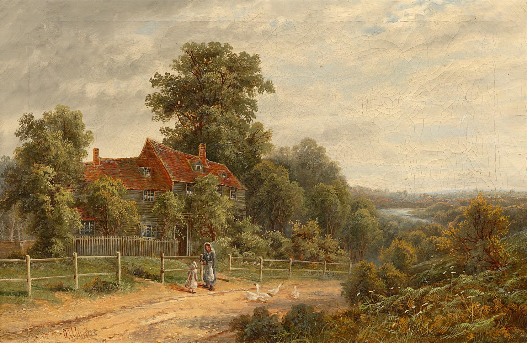 signováno vlevo dole, jméno autora na rámu dole uprostřed, rámováno v blondelovém rámu