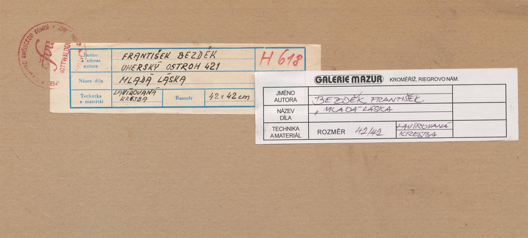 Monogramováno a datováno vlevo dole, na reversu autorský štítek ČFVU a štítek galerie Mazur. Paspartováno, zaskleno a rámováno.