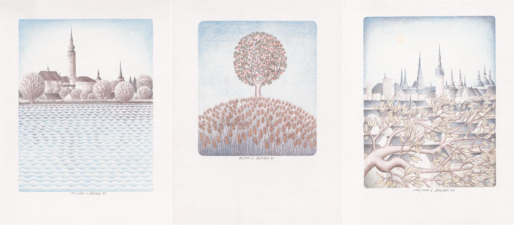Konvolut 3 kusů grafik, Krajiny