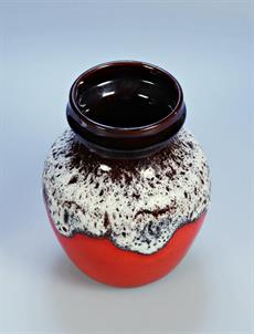 4. Keramická váza s bílo červenou glazurou a hnědým hrdlem