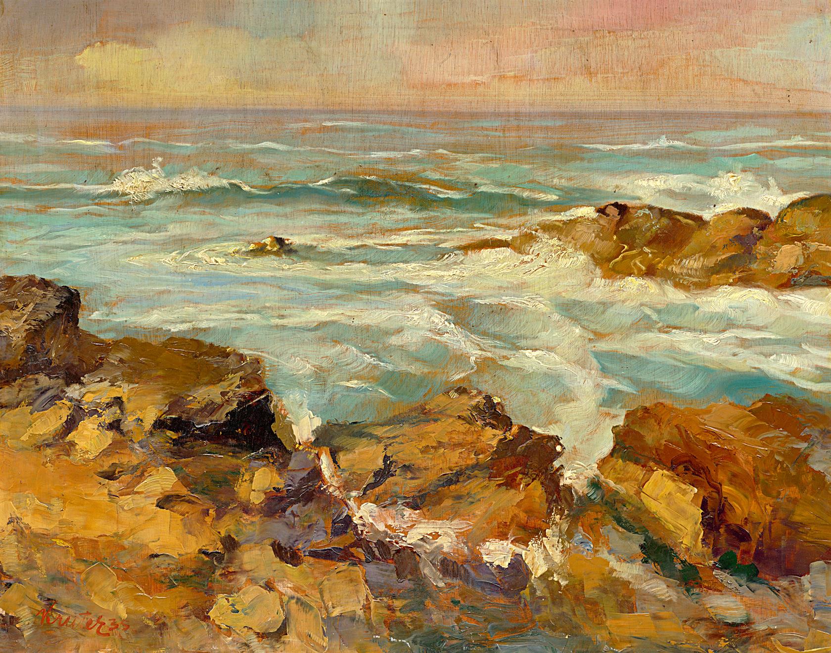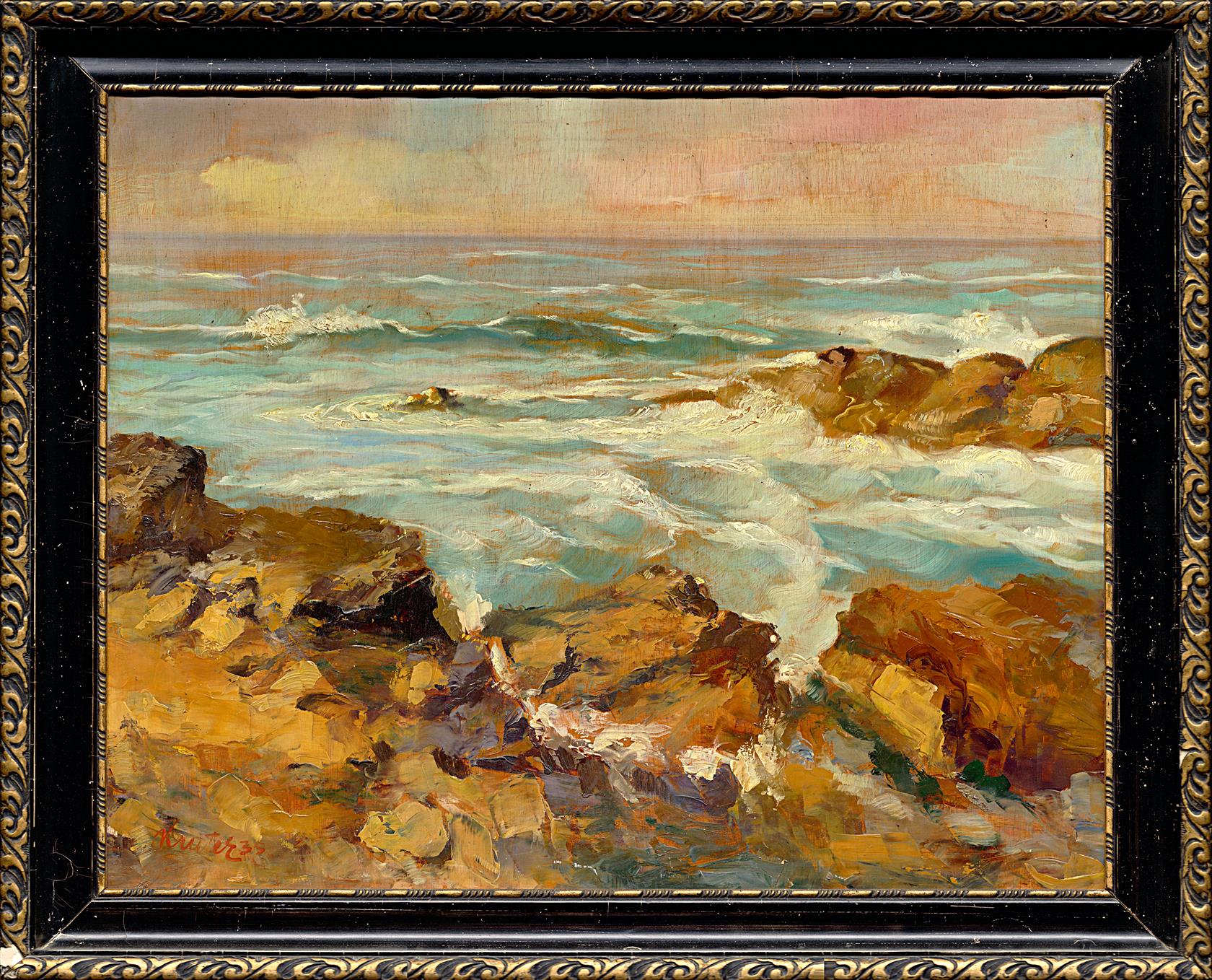 Technika: olej na překližce, datace: 1935