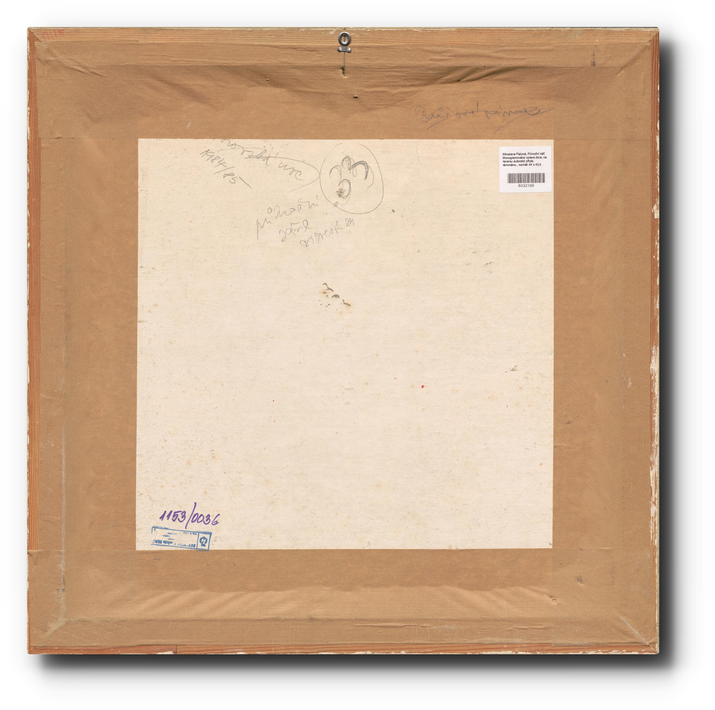 Monogramováno vpravo dole, na reversu autorský přípis, rámováno.
