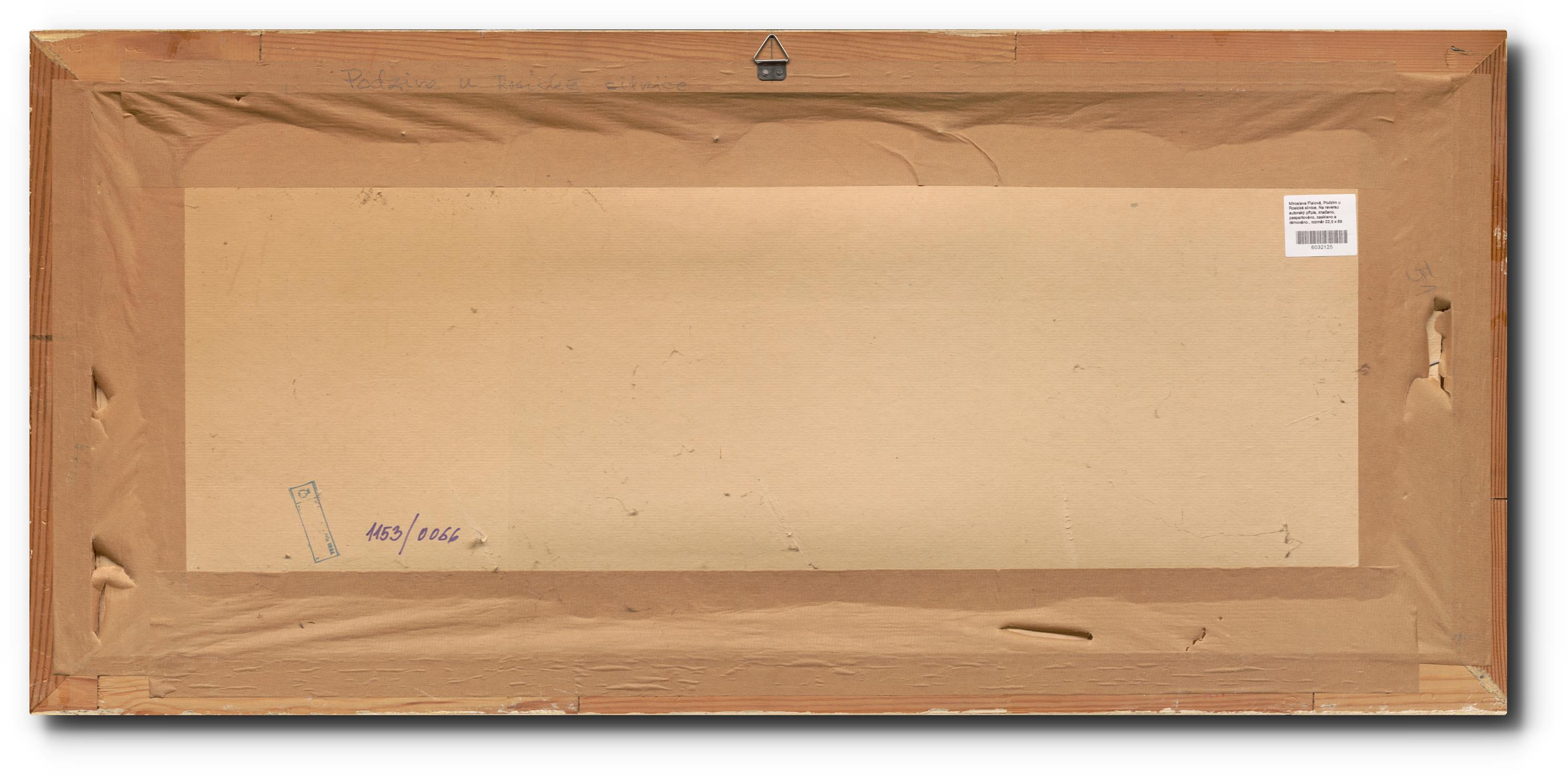 Na reversu autorský přípis, přisouzeno autorovi, paspartováno, zaskleno a rámováno.