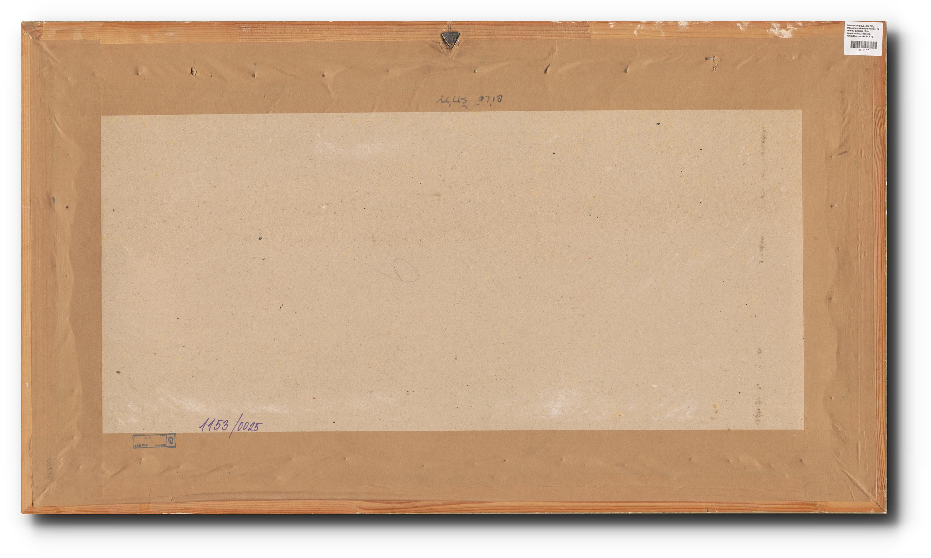 Monogramováno vpravo dole, na reversu autorský přípis, paspartováno, zaskleno, rámováno.