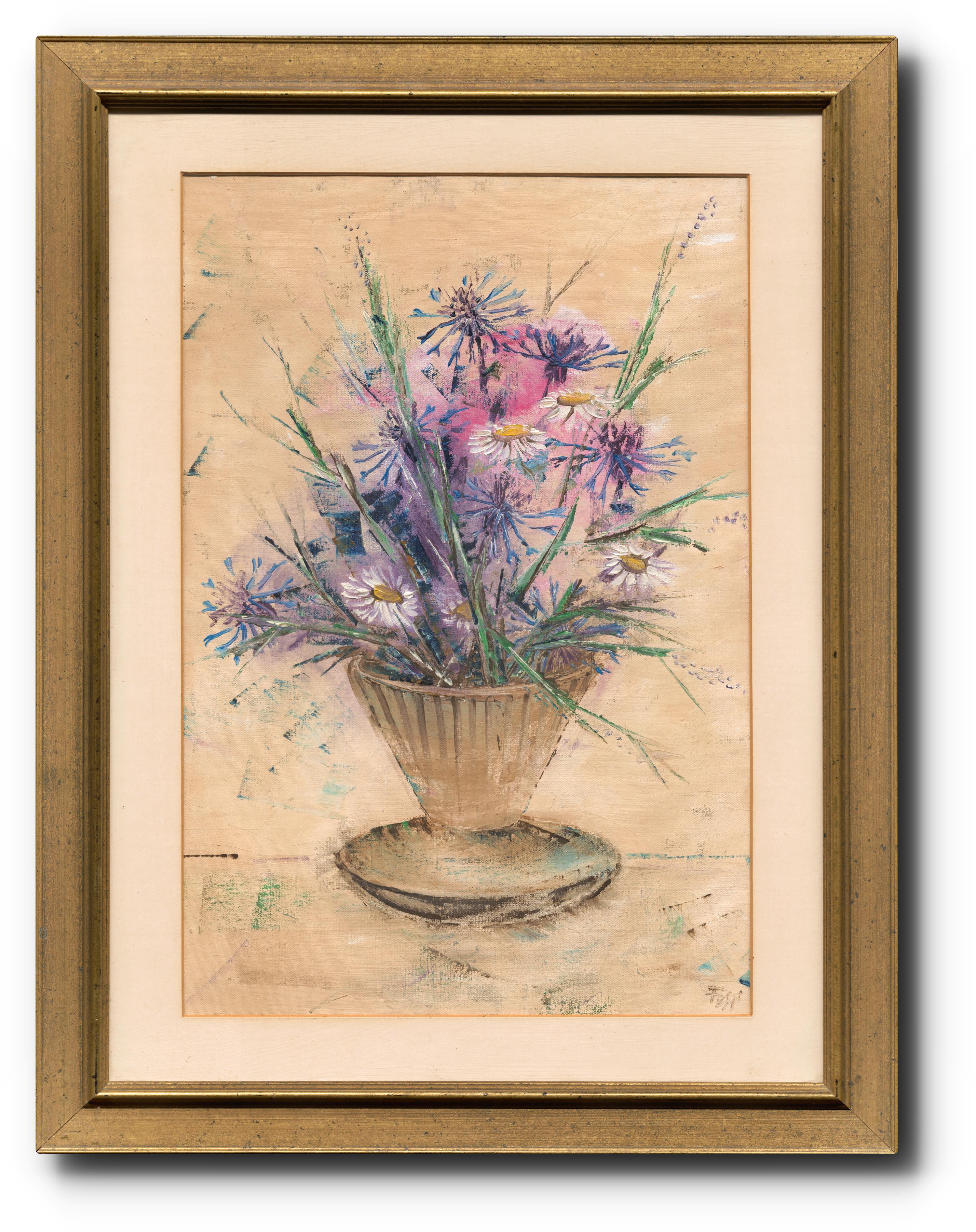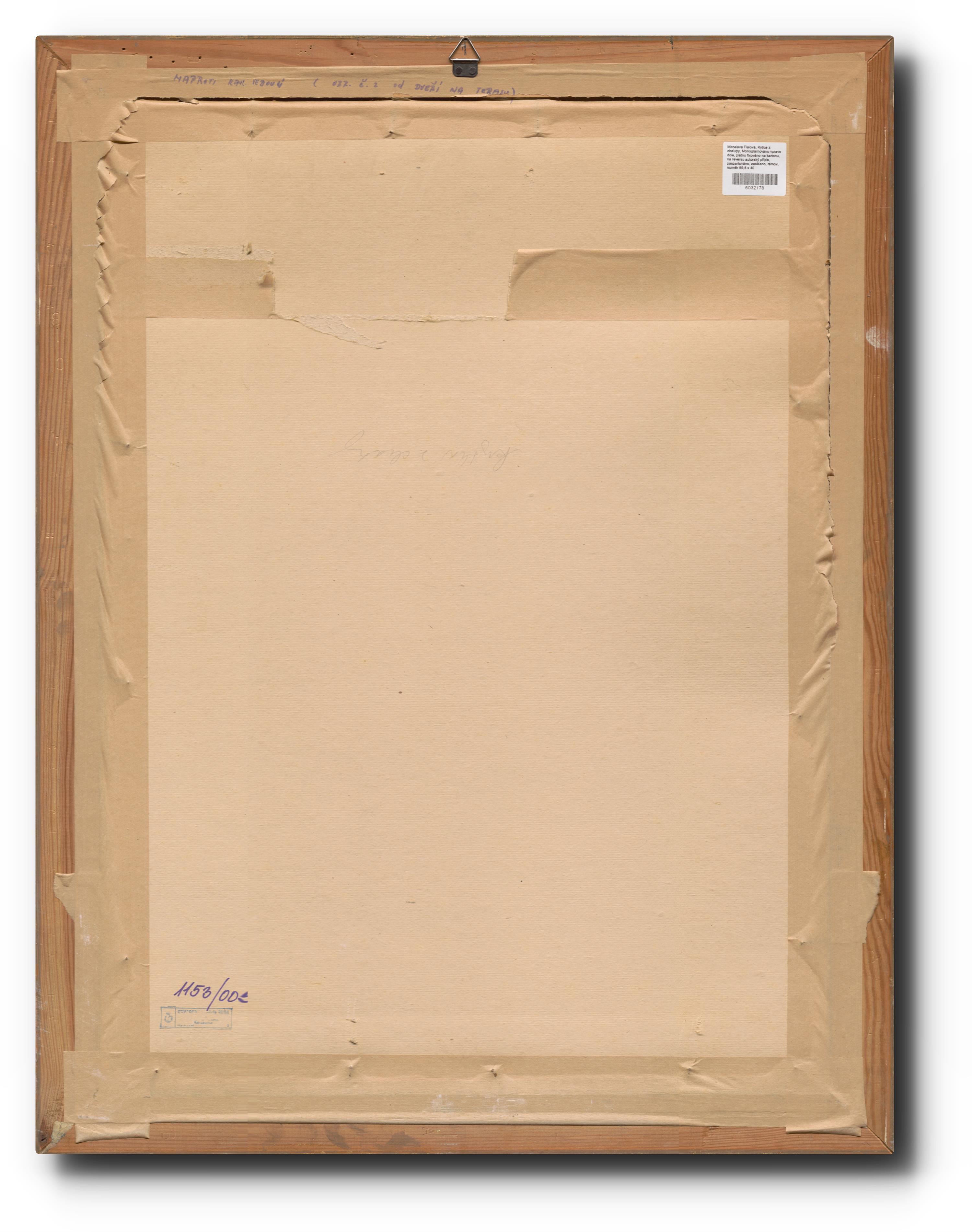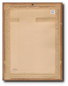 Monogramováno vpravo dole, plátno fixováno na kartonu, na reversu autorský přípis, paspartováno, zaskleno, rámováno.