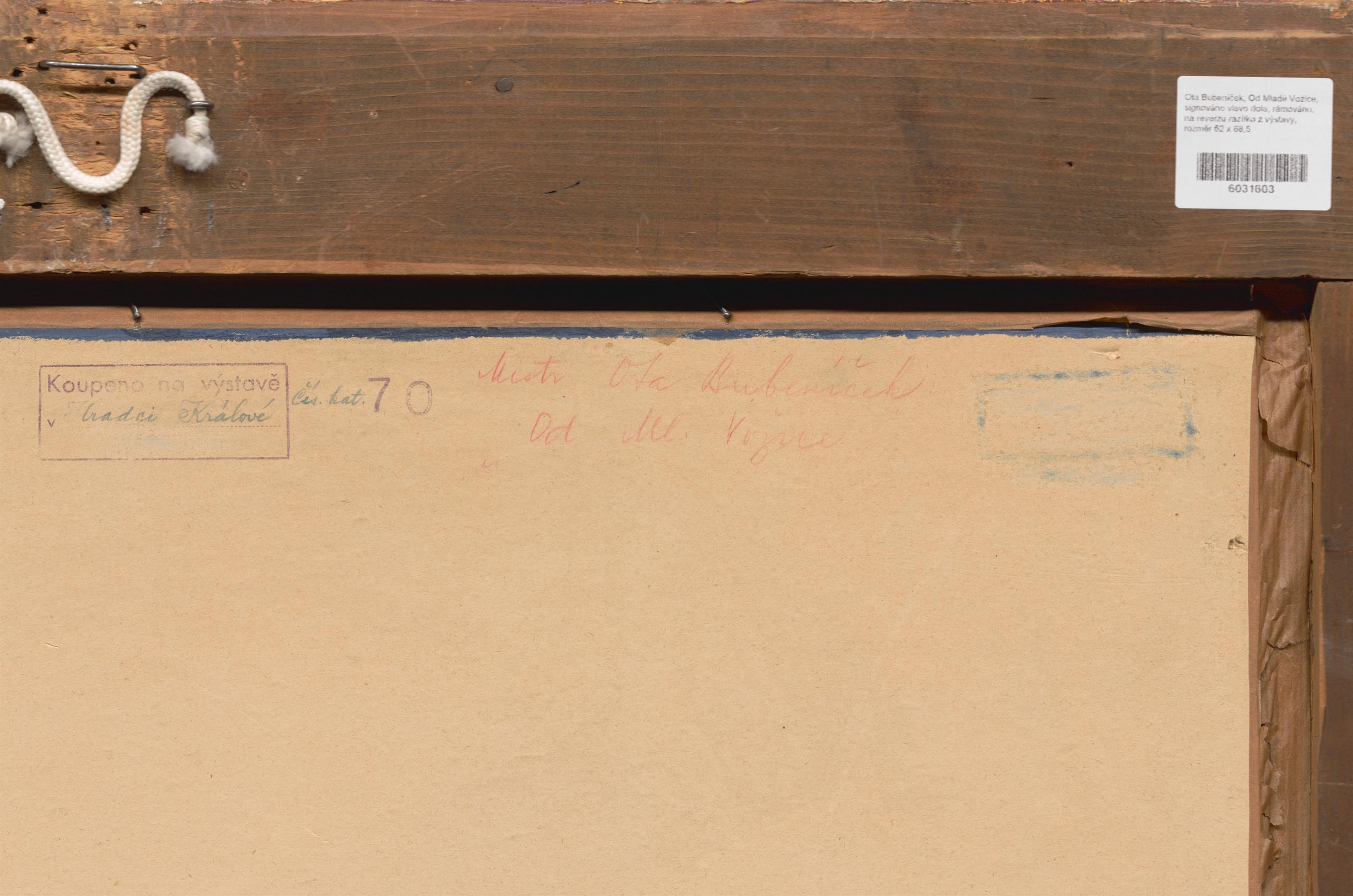 signováno vlevo dole, rámováno, na reverzu razítko z výstavy