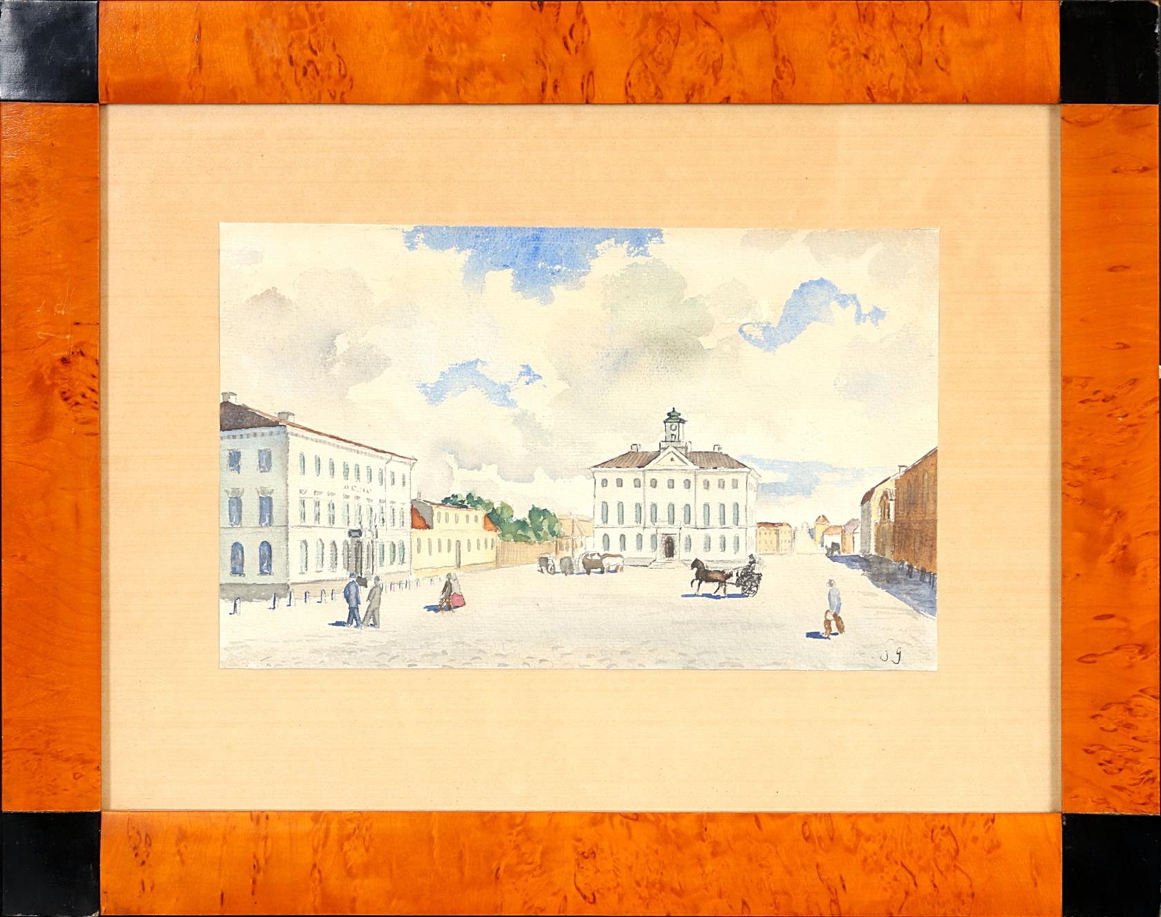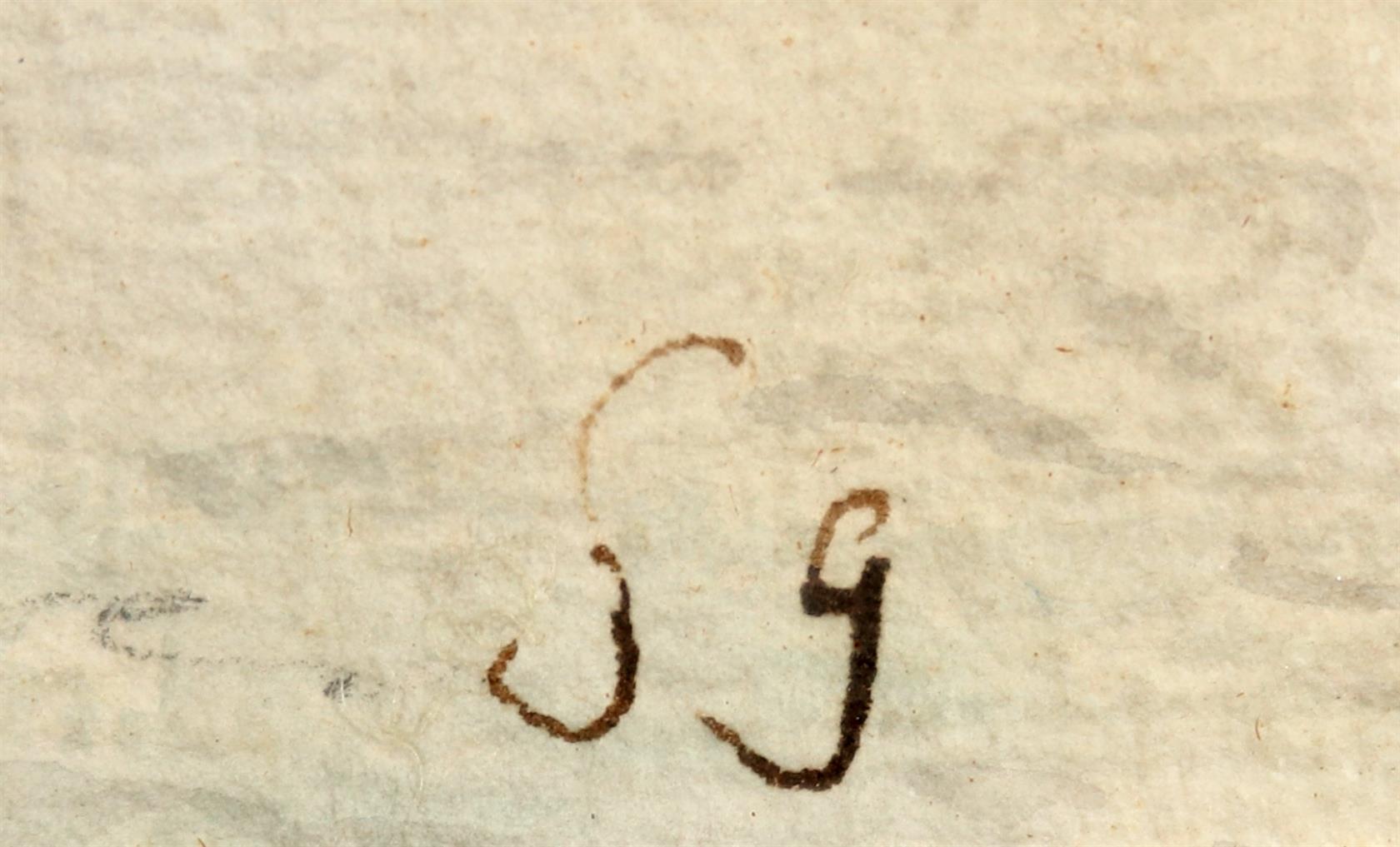 signováno vpravo dole monogramem SG, zaskleno, rámováno