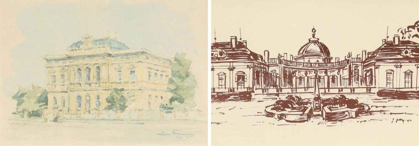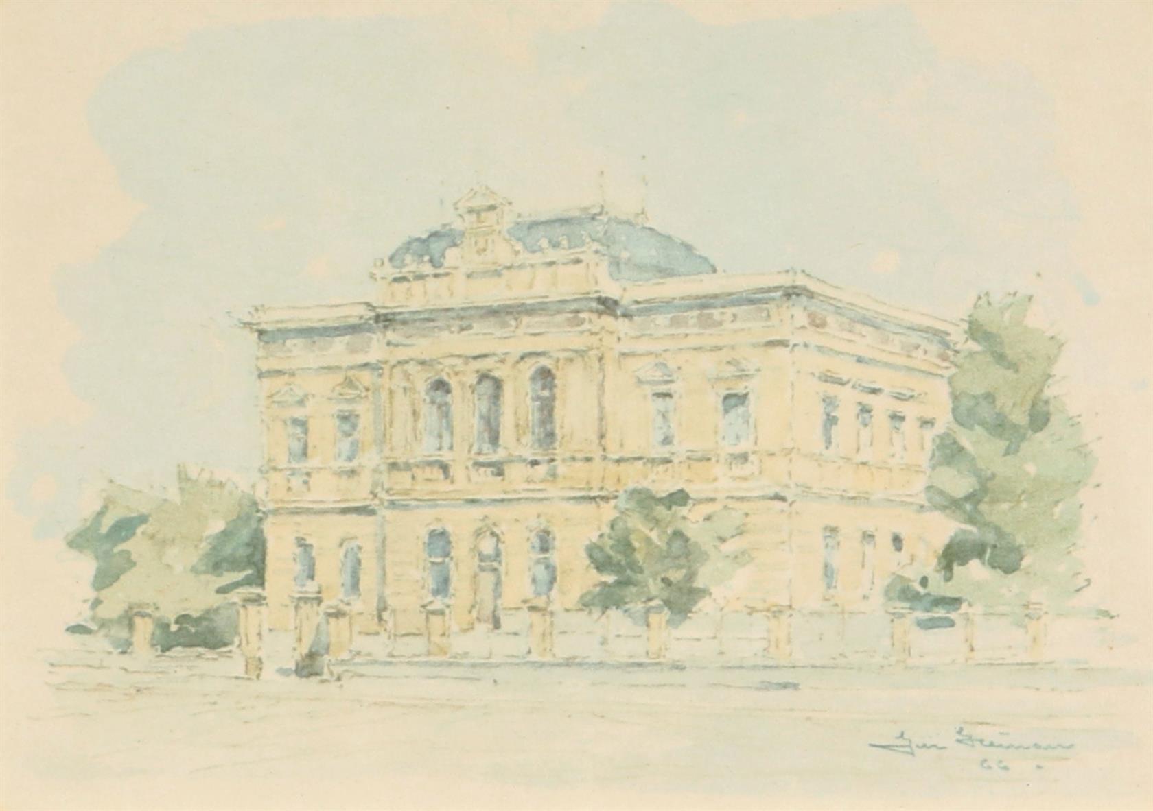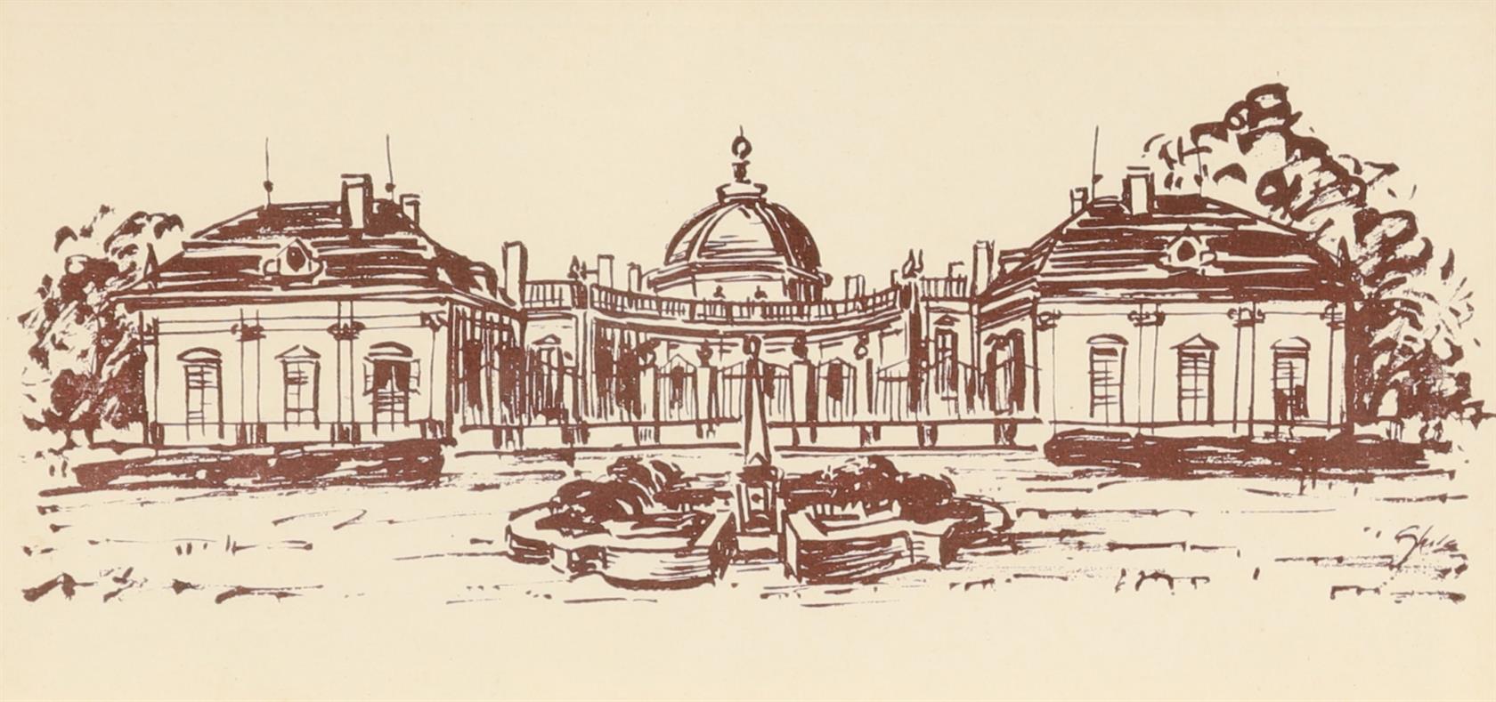 zámeček, gymnázium, konvolut obsahuje litografii a tisk