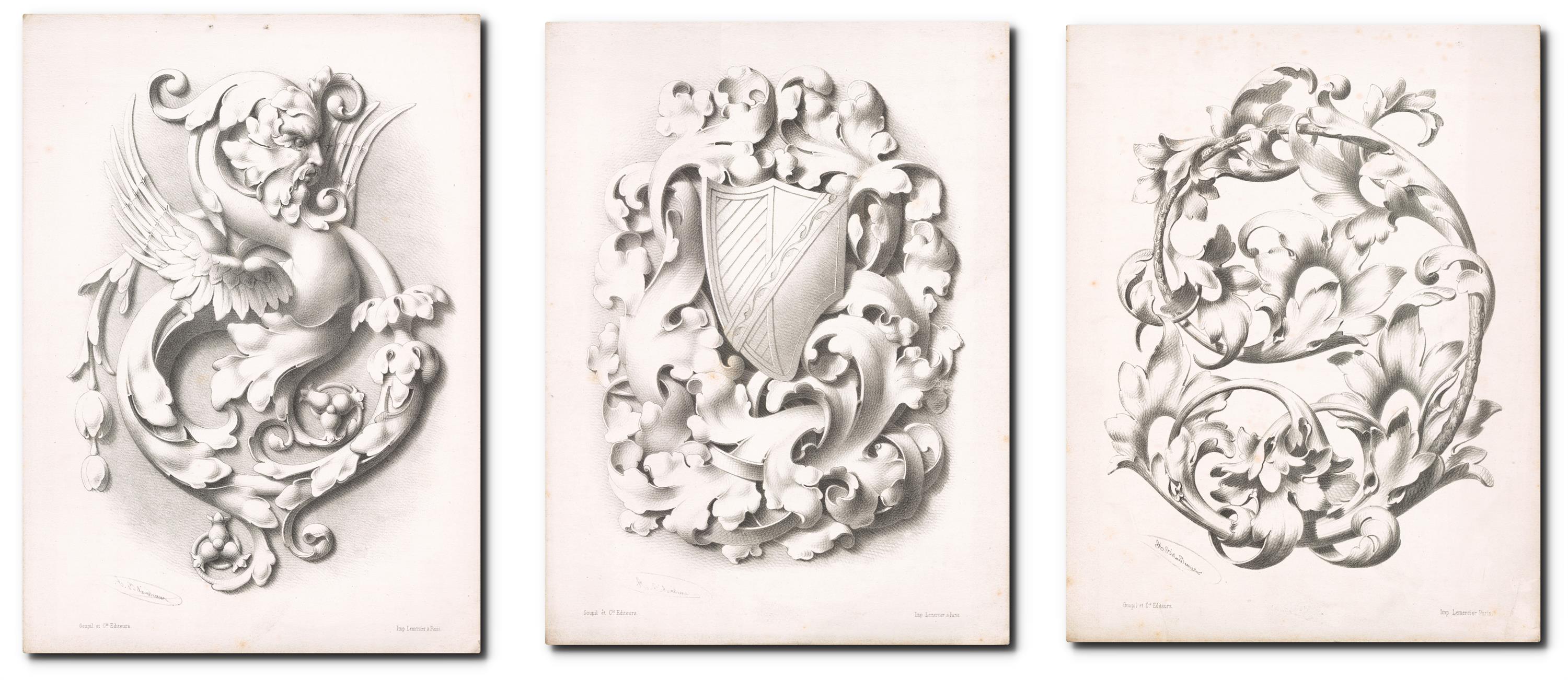 Tři kusy litografií z dílny Lemercier a Paris