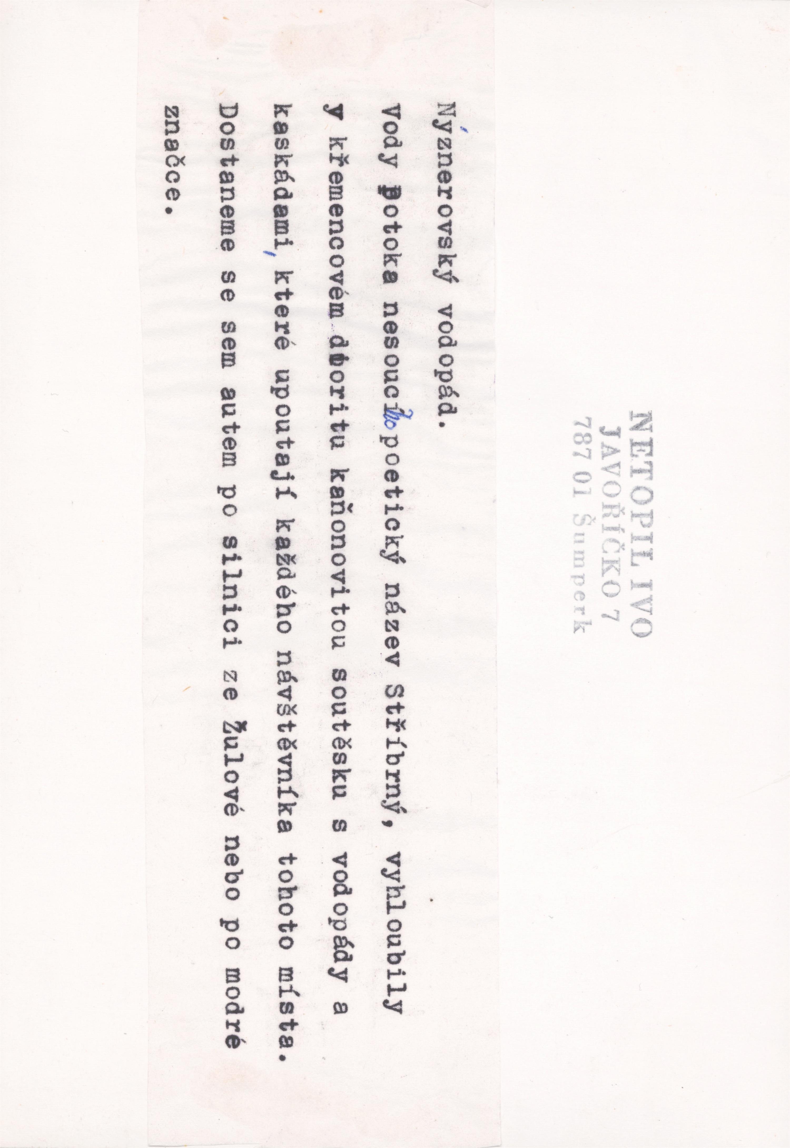 autorská bromostříbrná fotografie, značeno na reverzu autorským razítkem, místopisný popis a razítko vydání v časopisu Turista