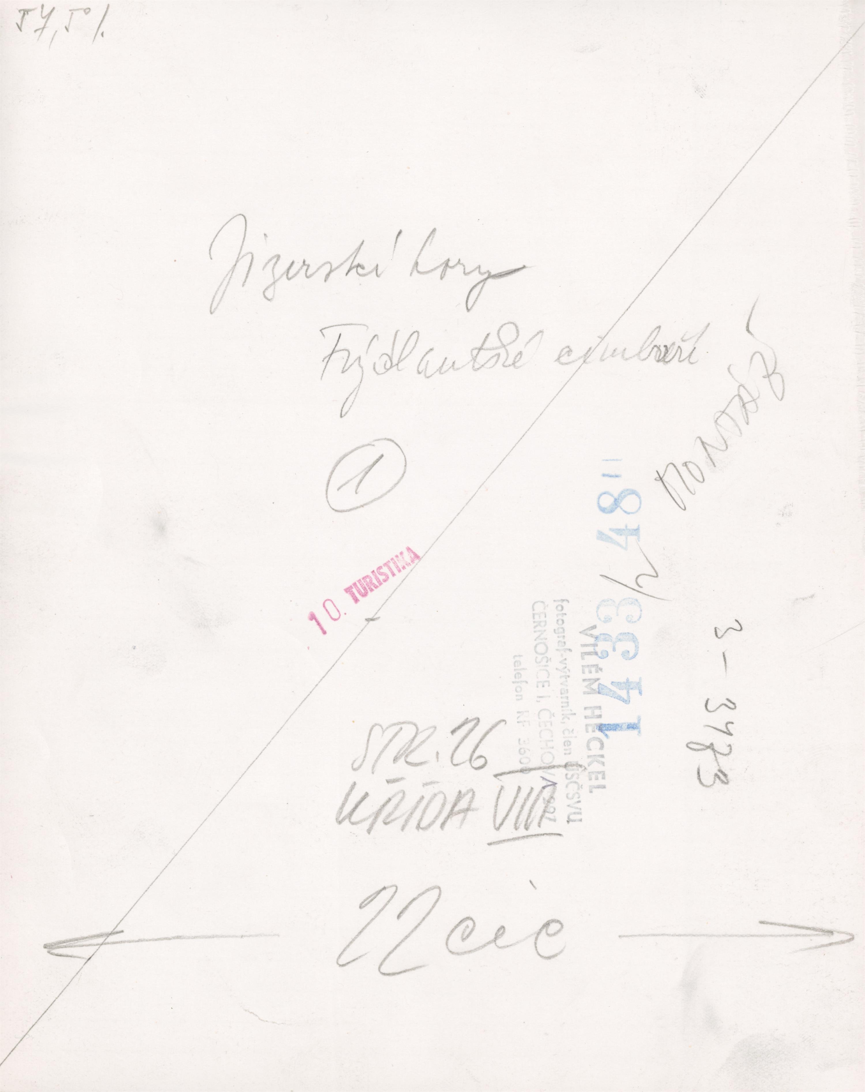 autorská bromostříbrná fotografie, značeno na reverzu autorským razítkem, místopisný popis a razítko vydání v časopisu Turista