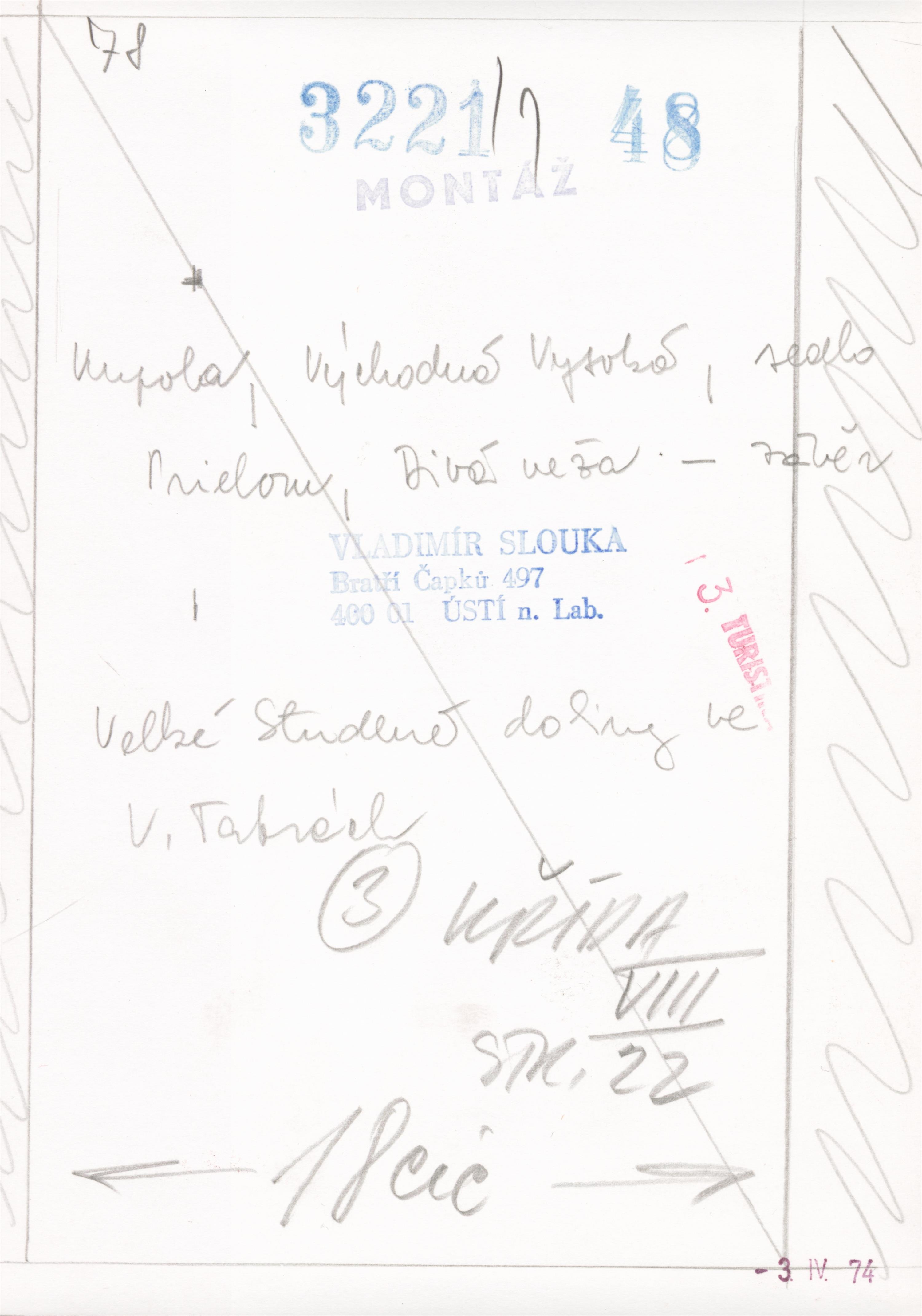 autorská bromostříbrná fotografie, značeno na reverzu autorským razítkem, místopisný popis a razítko vydání v časopisu Turista