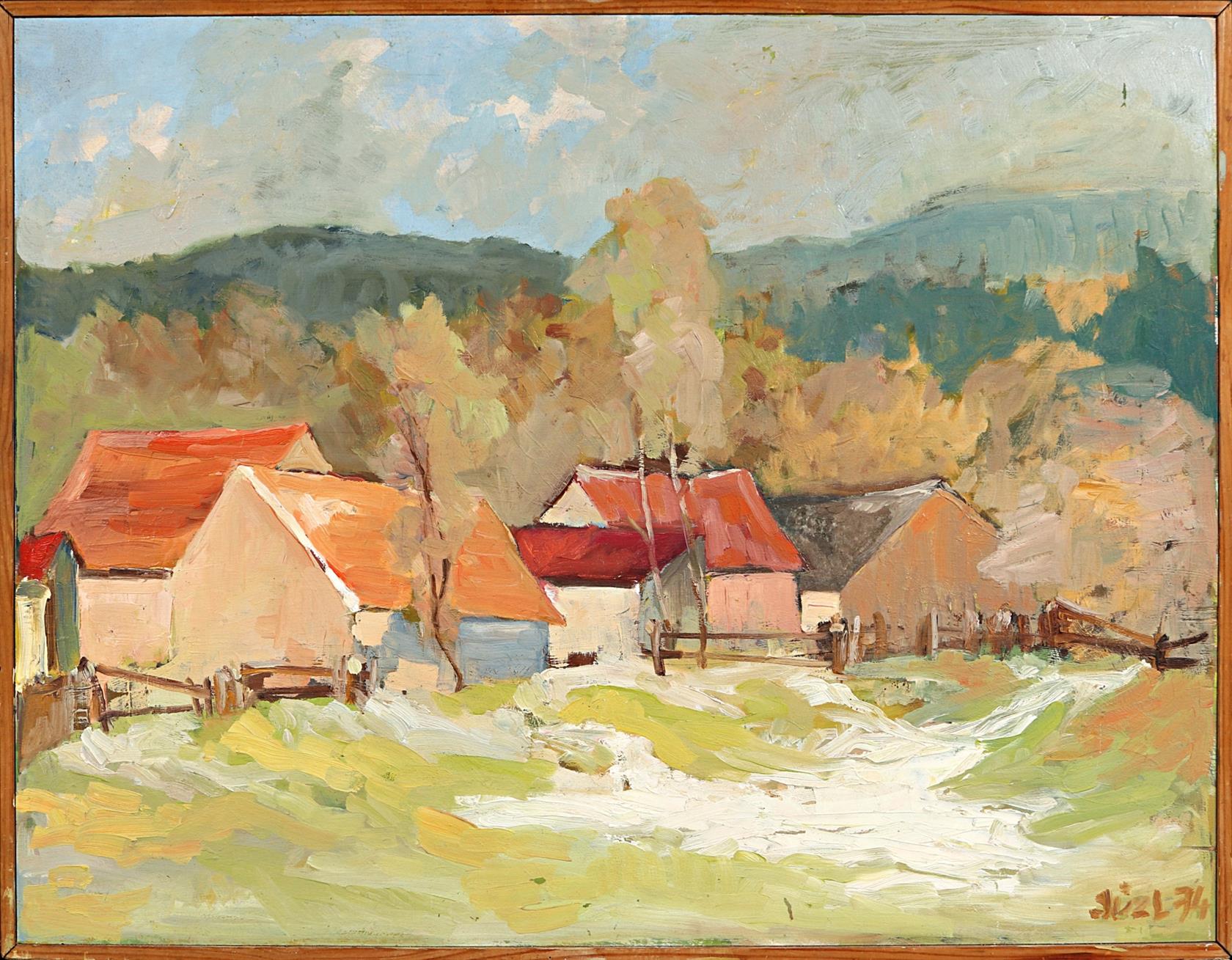 Technika: olej na překližce, datace: 1973