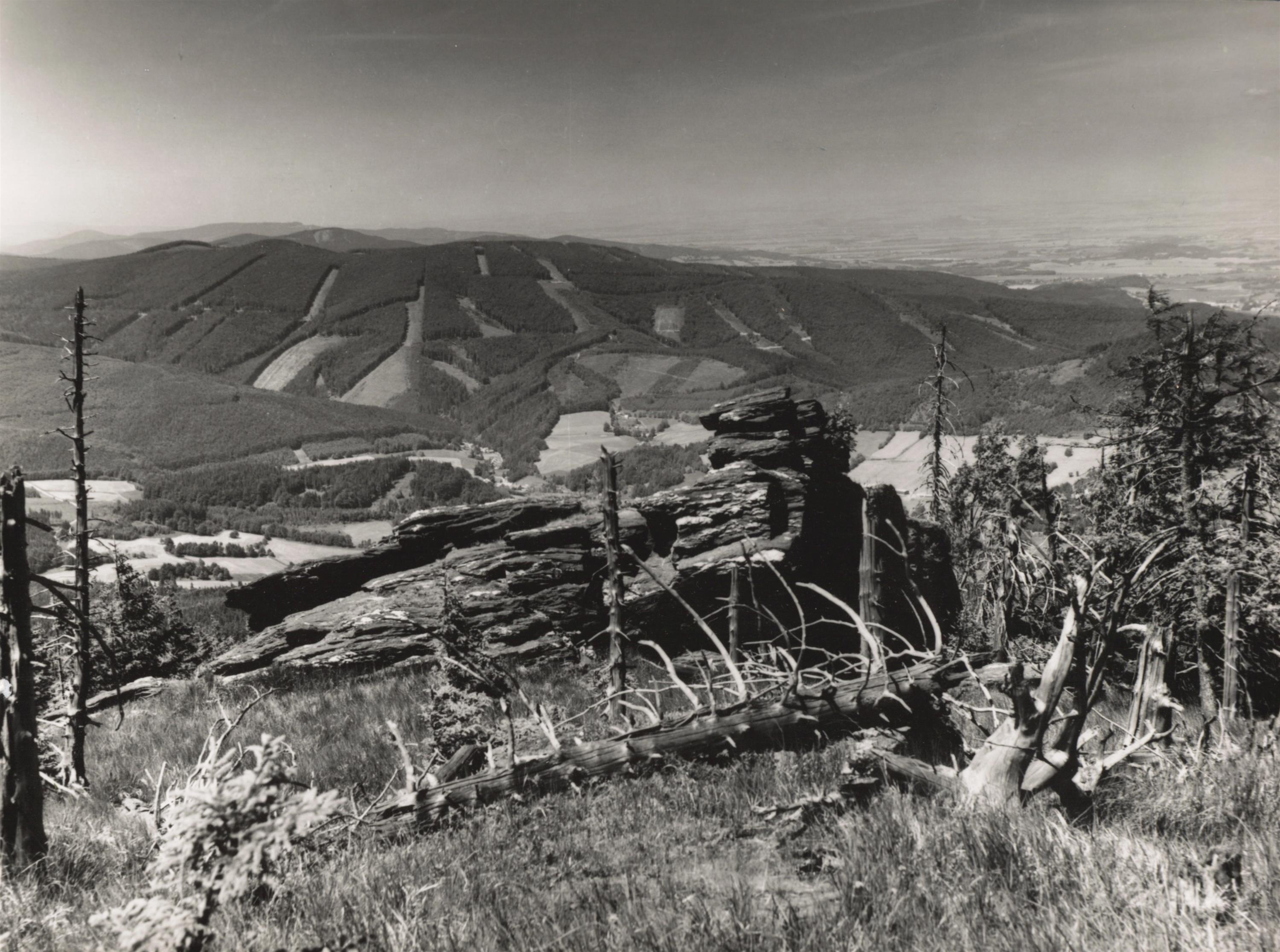 241. Jeseníky, Obří skály pod Šerákem, vzadu Rychlebské vrchy