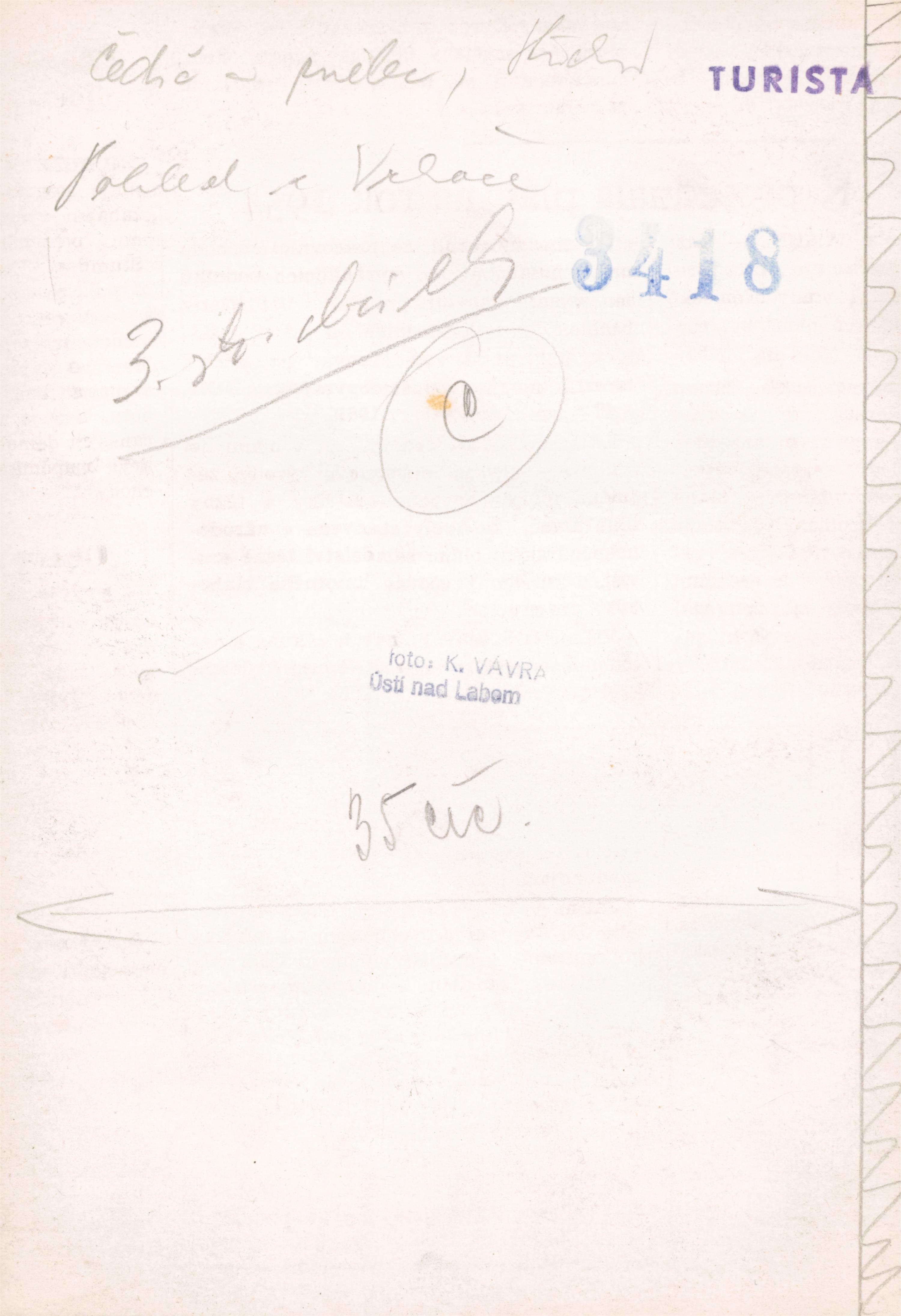 autorská bromostříbrná fotografie, značeno na reverzu autorským razítkem, místopisný popis a razítko vydání v časopisu Turista