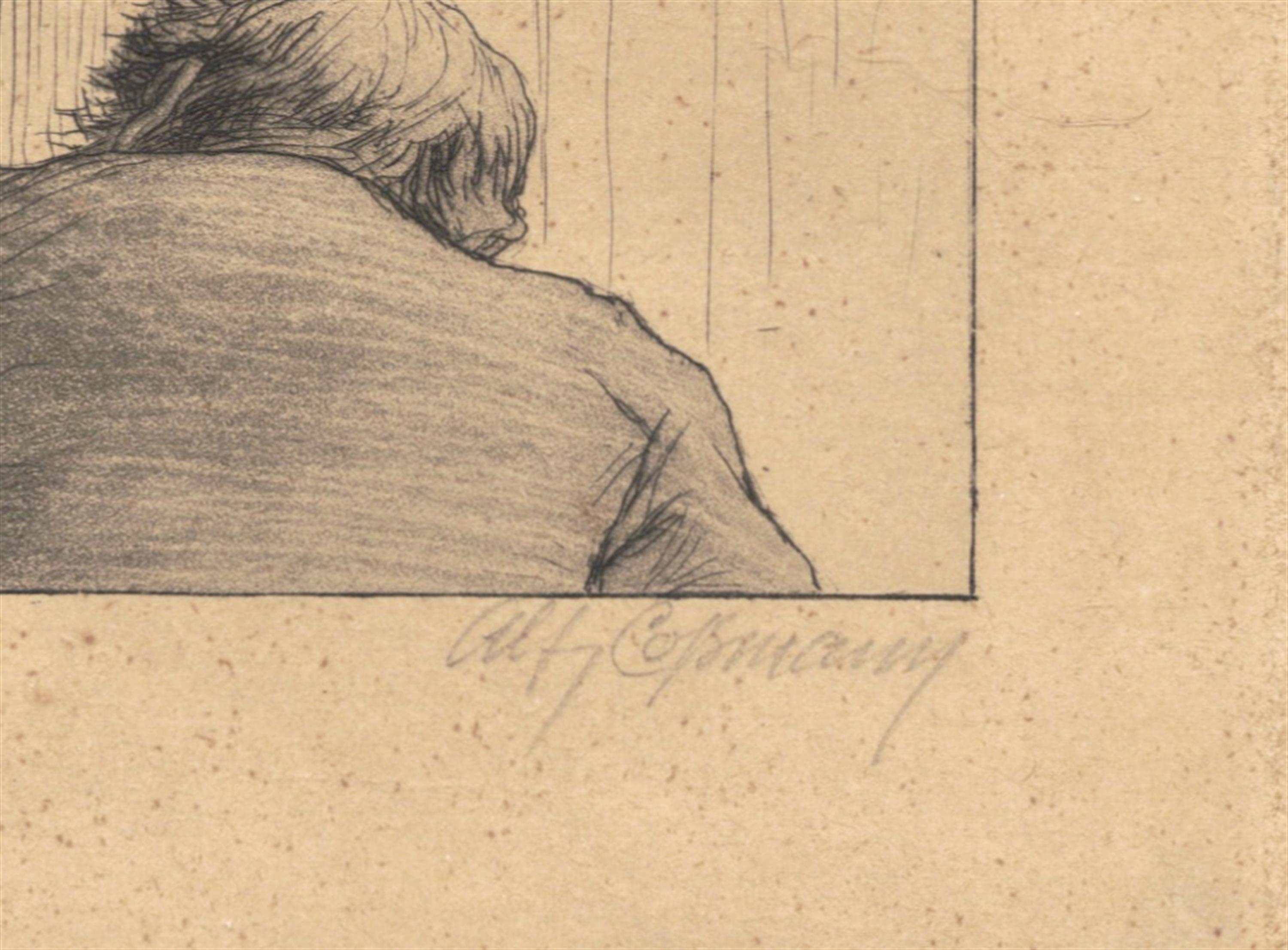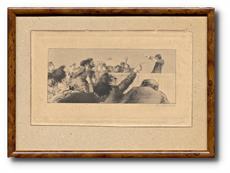 Signováno tužkou vpravo dole, zaskleno a rámováno.