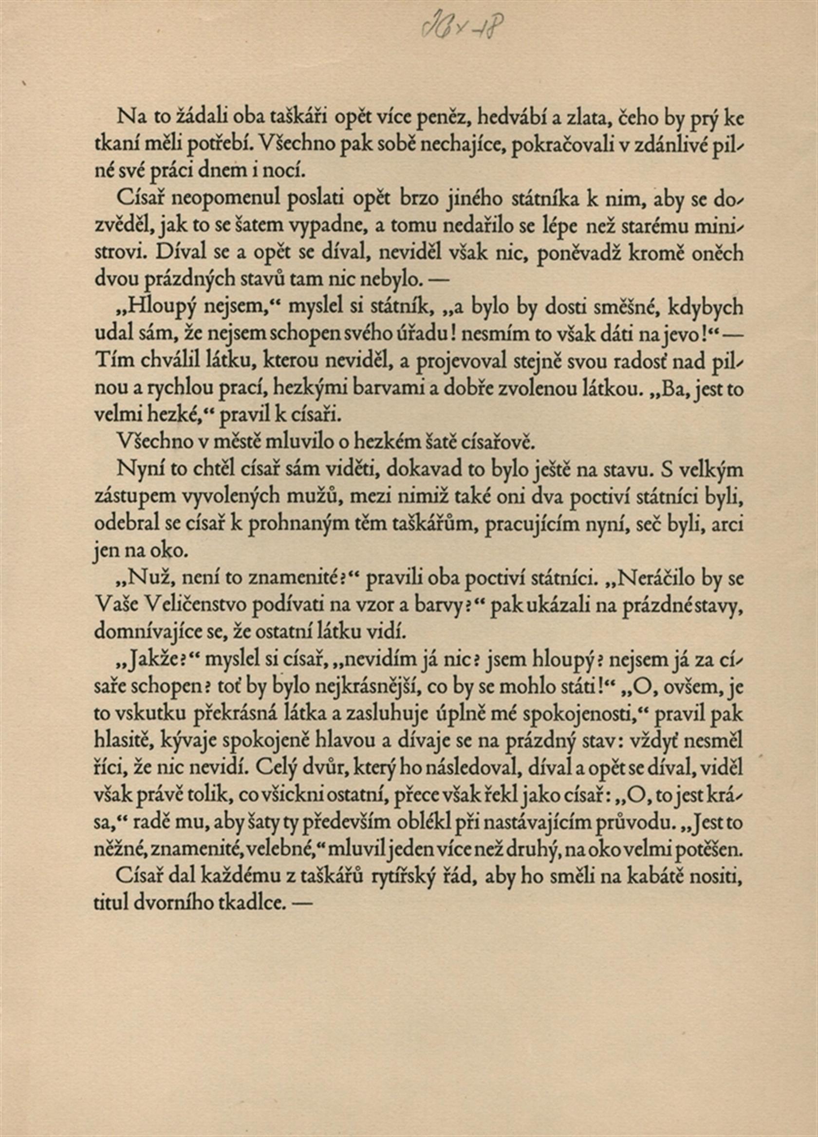 signováno tužkou vpravo dole, na reversu část textu z příběhu