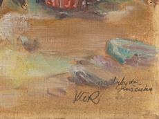 Signováno vpravo dole, protržené pltáno.