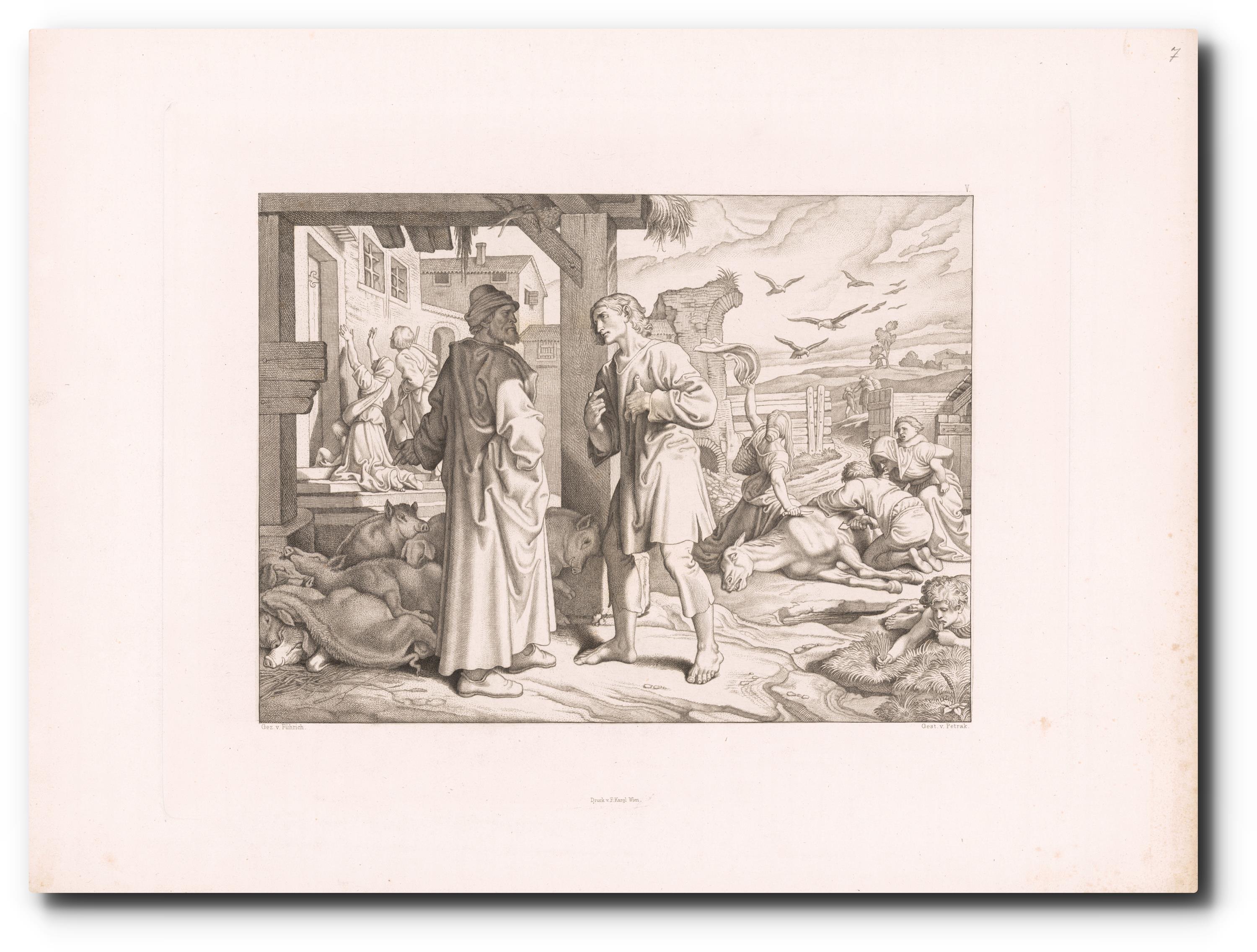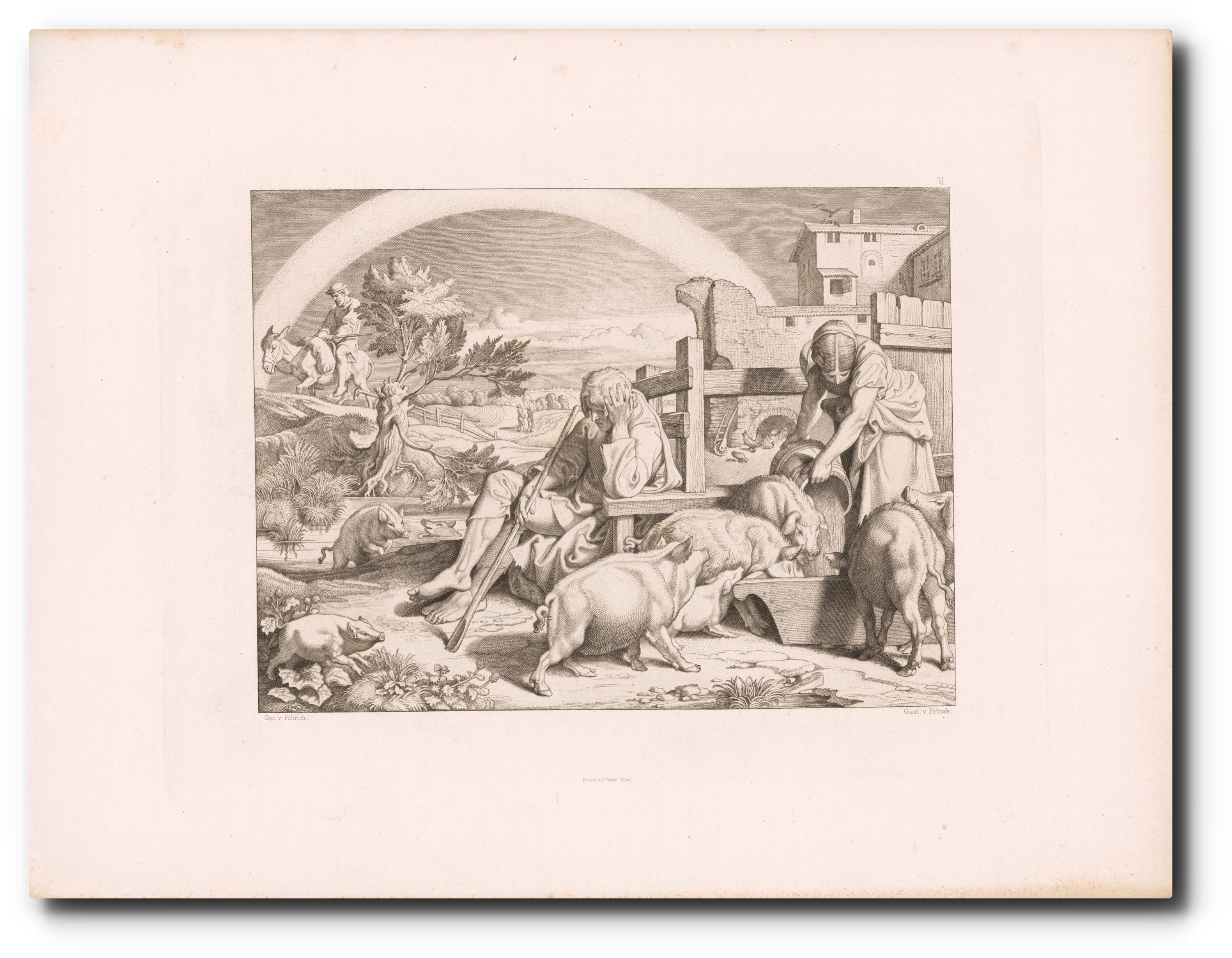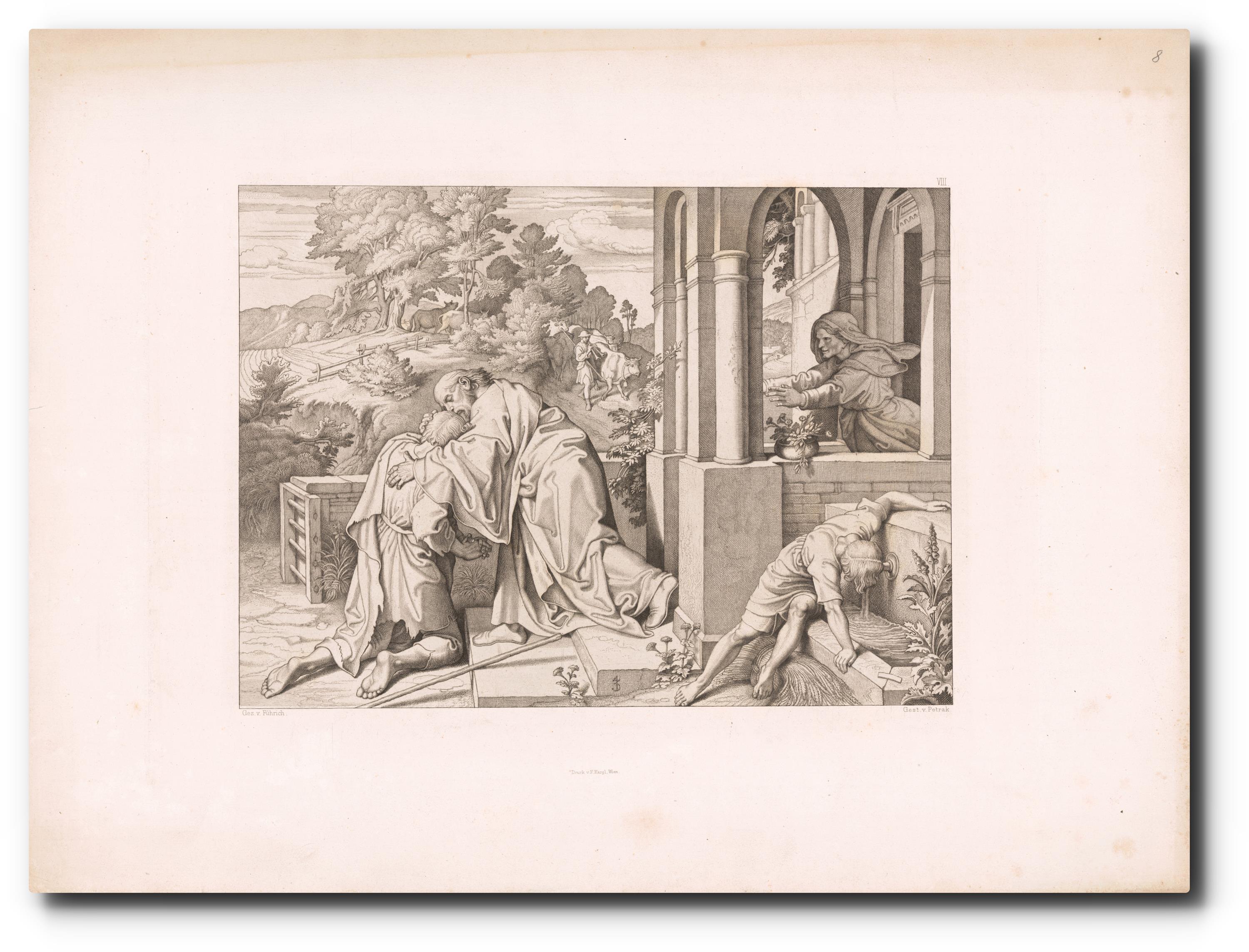 v grafice signováno monogramem, pod grafikou uvedeni autoři tisku: gez. v. Führich, Gest v. Petrak