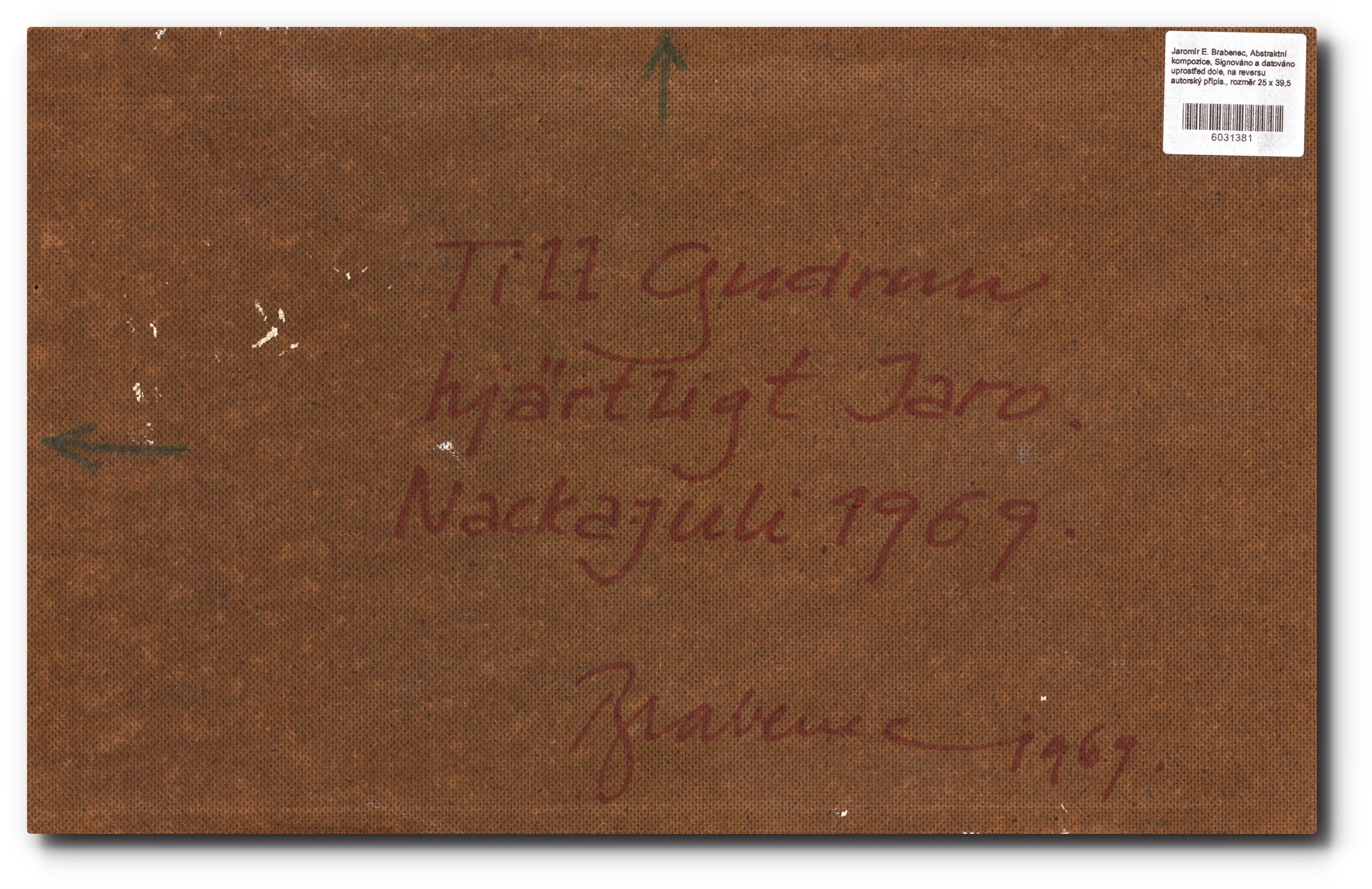 Signováno a datováno uprostřed dole, na reversu autorský přípis.