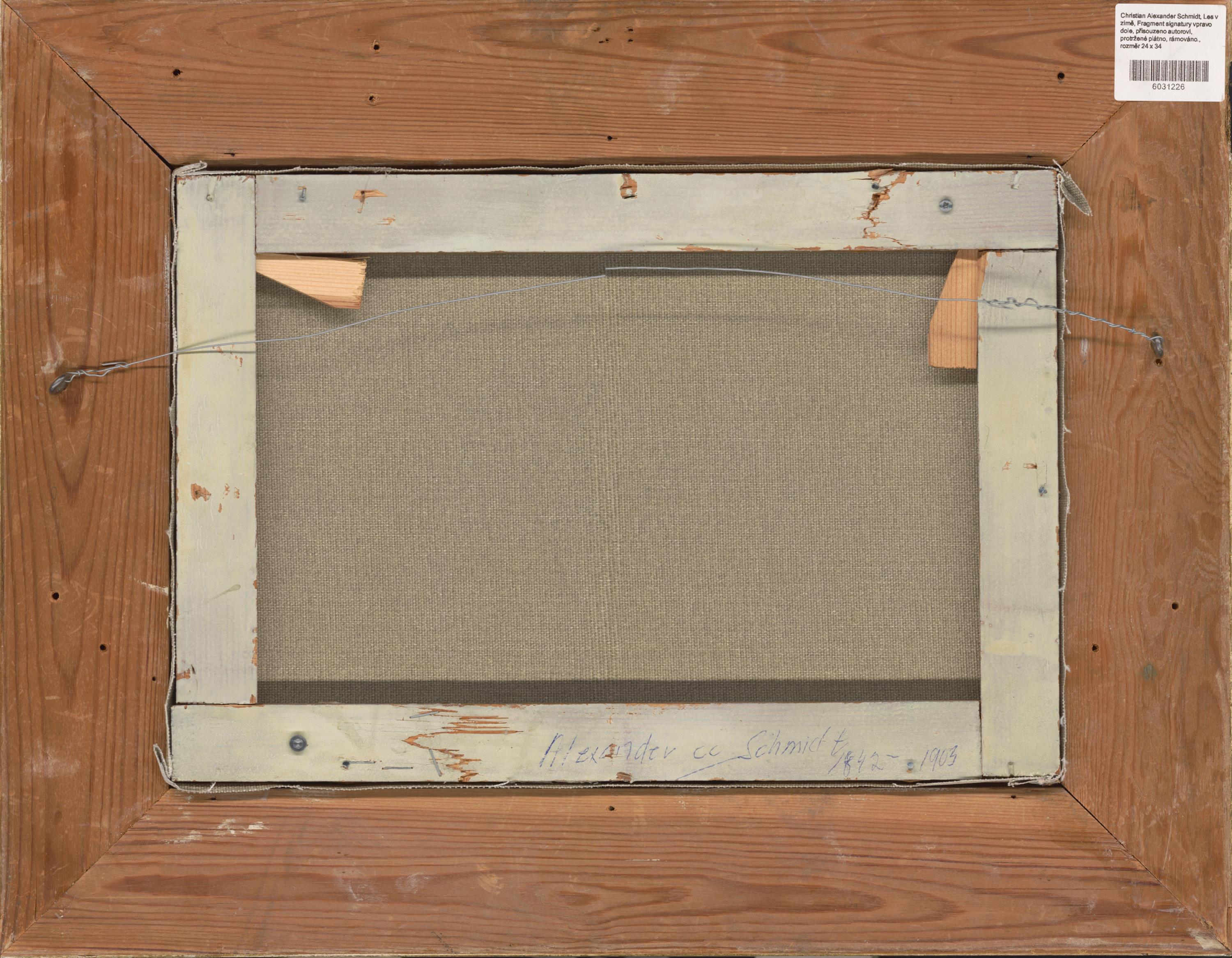 Fragment signatury vpravo dole, přisouzeno autorovi, protržené plátno, rámováno.