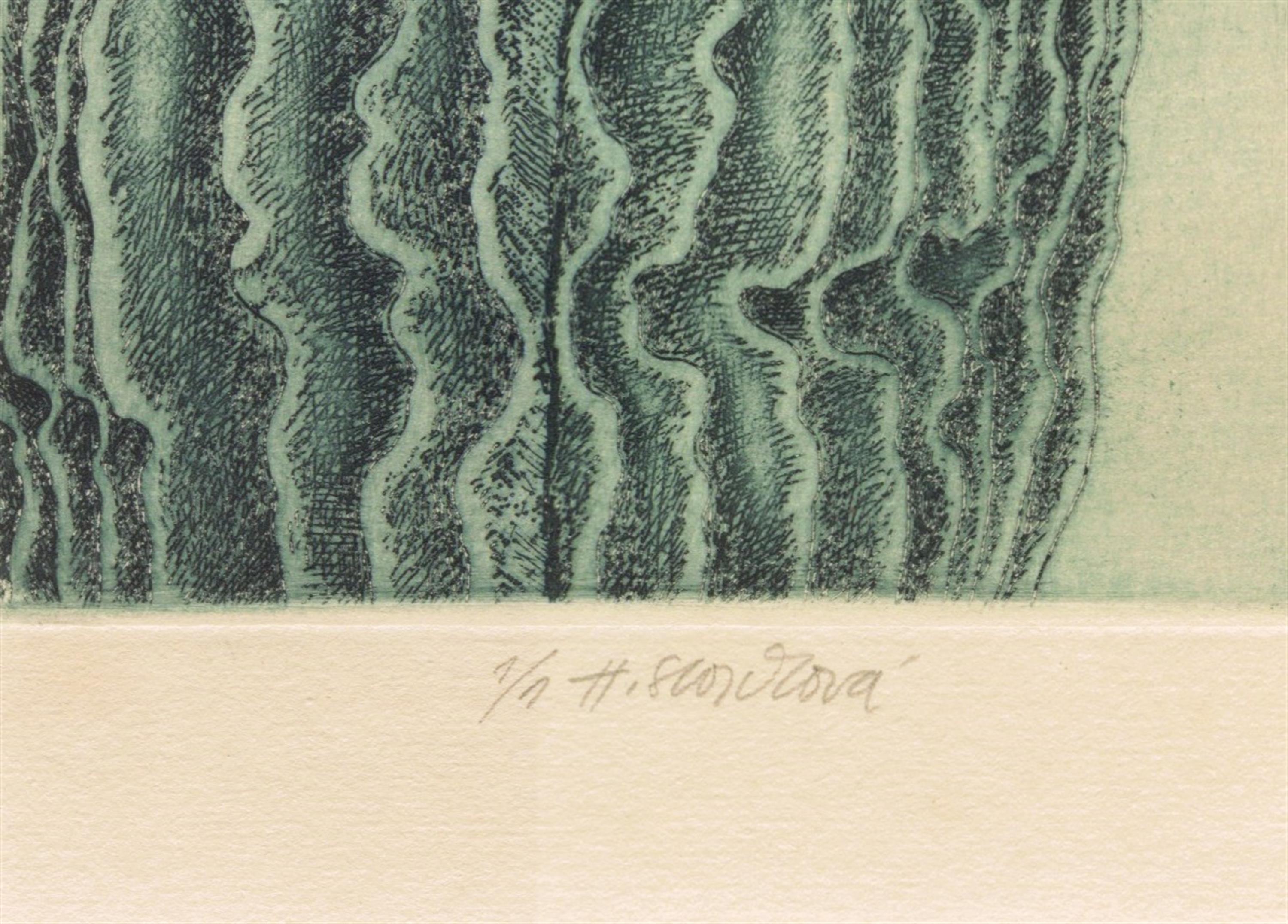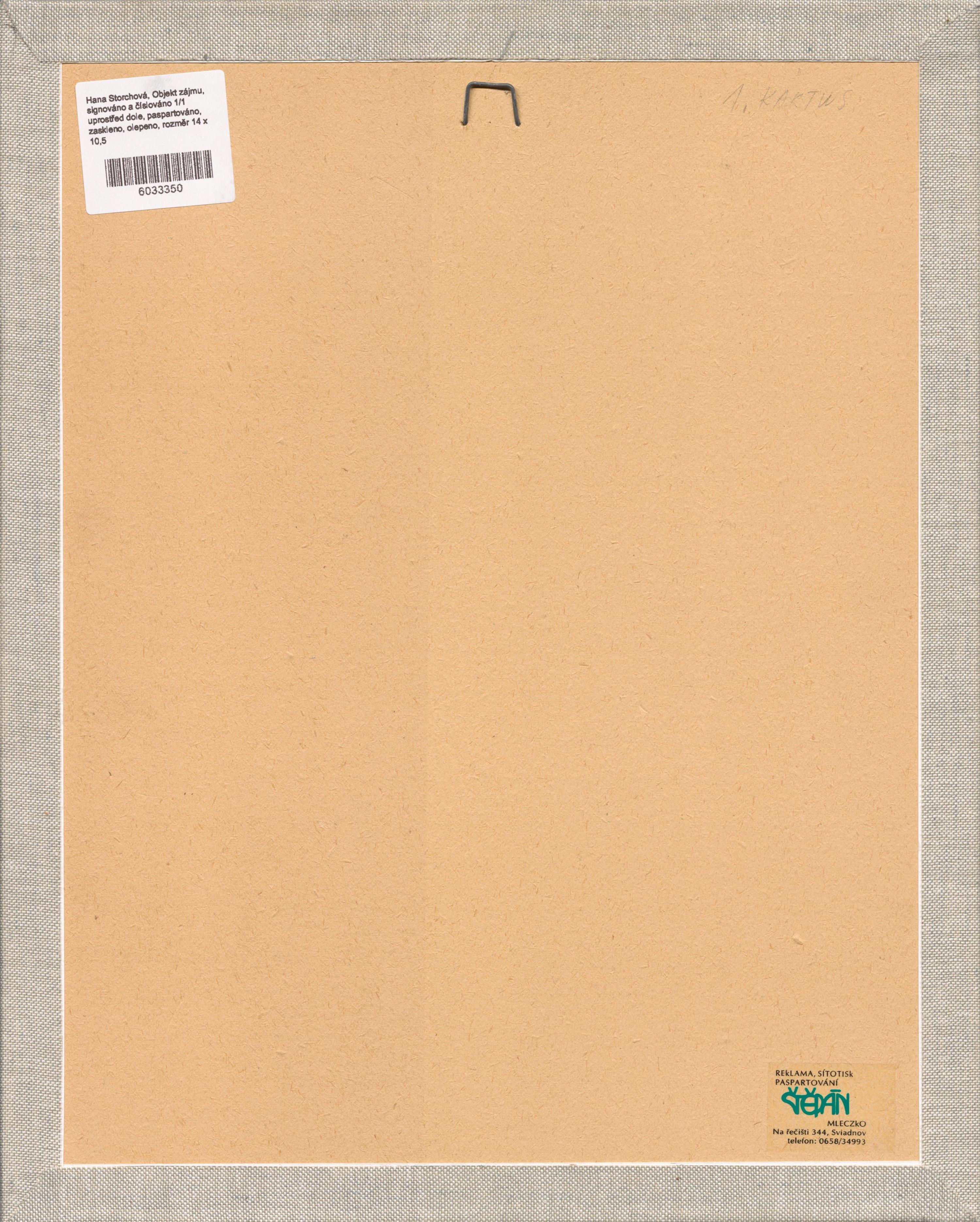 signováno a číslováno 1/1 uprostřed dole, paspartováno, zaskleno, olepeno