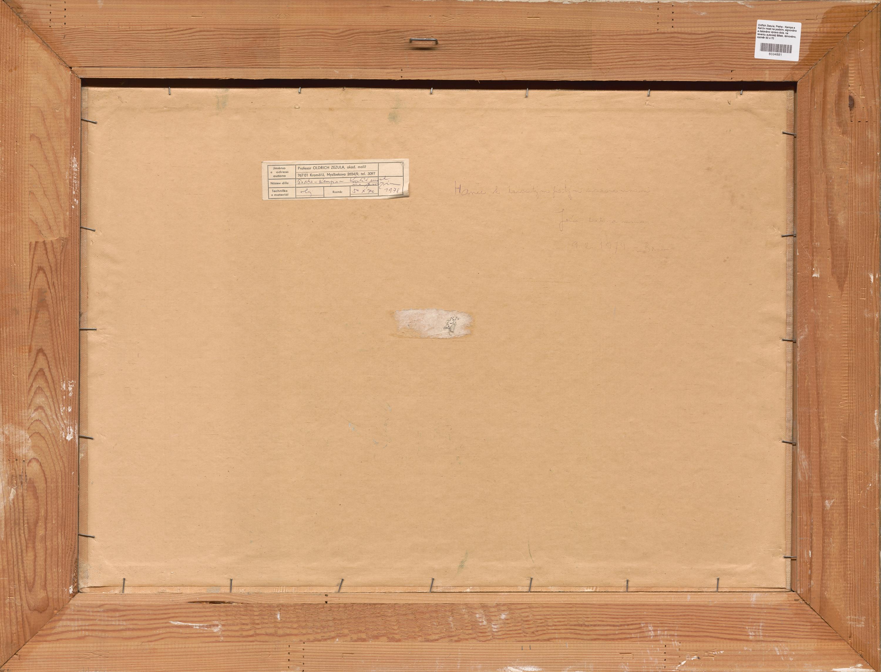 signováno a datováno vpravo dole, na reverzu autorský štítek, rámováno