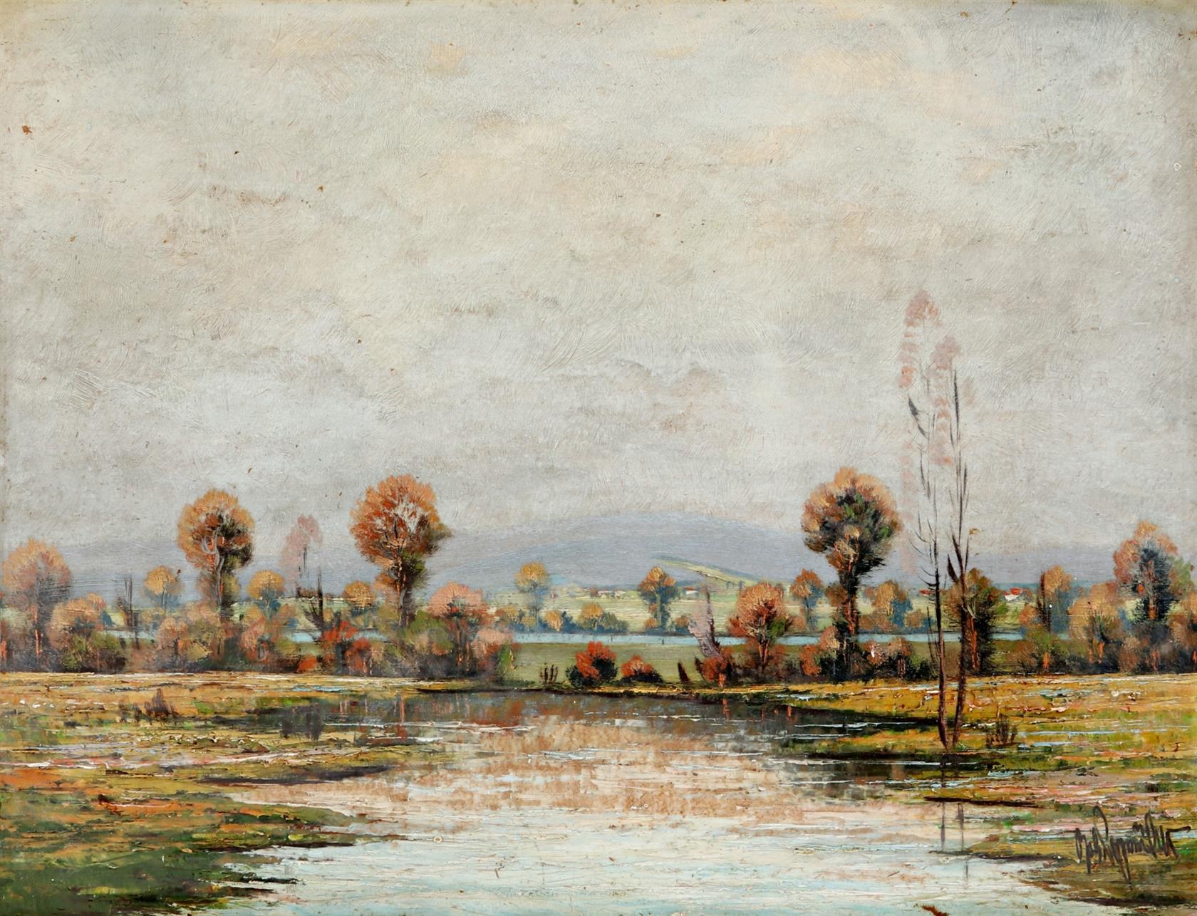 signováno vpravo dole, rámováno