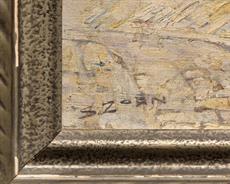 Signováno vlevo dole, plátno fixováno na kartonu, rámováno.