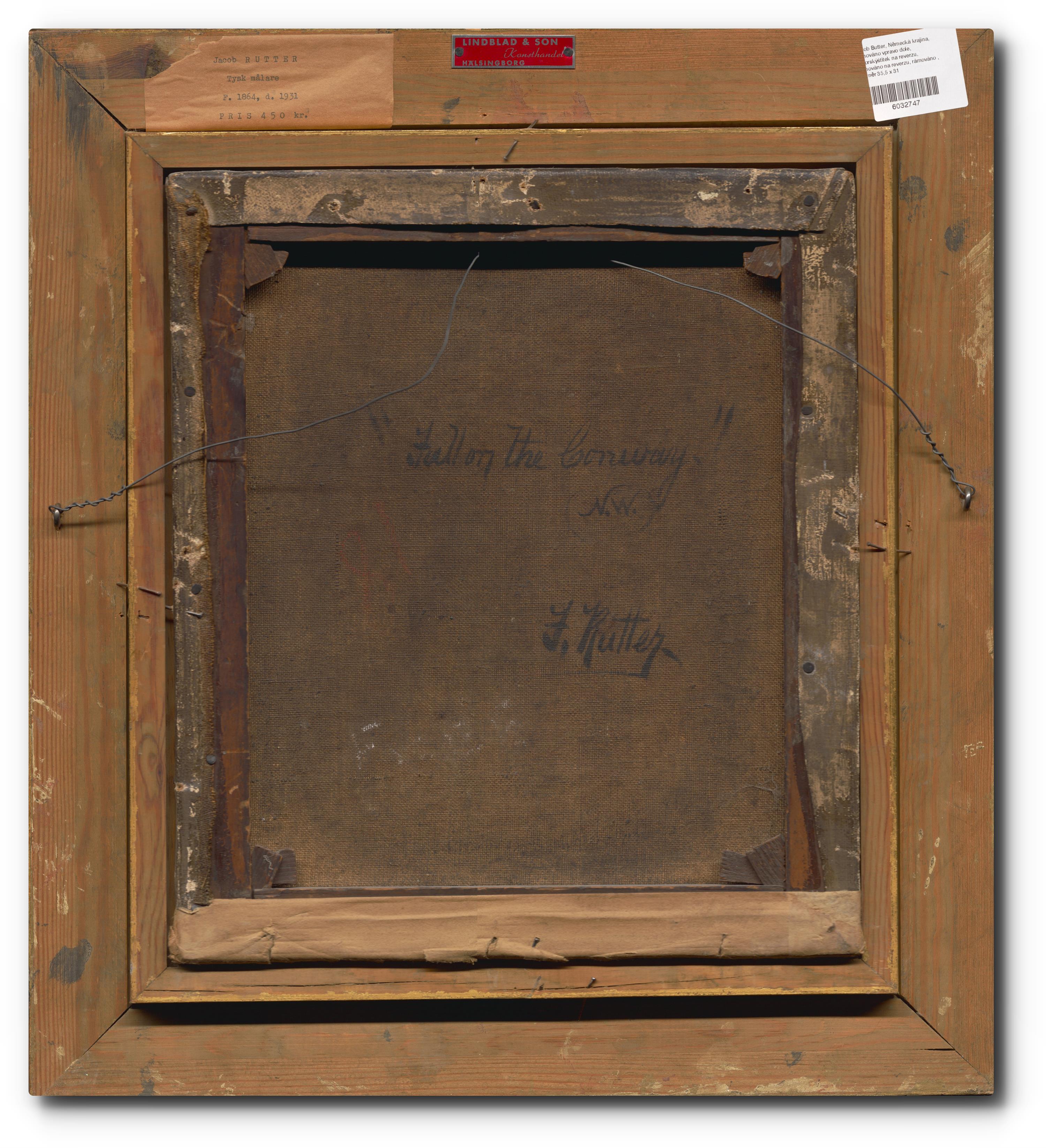 signováno vpravo dole, autorskýštítek na reverzu, signováno na reverzu, rámováno