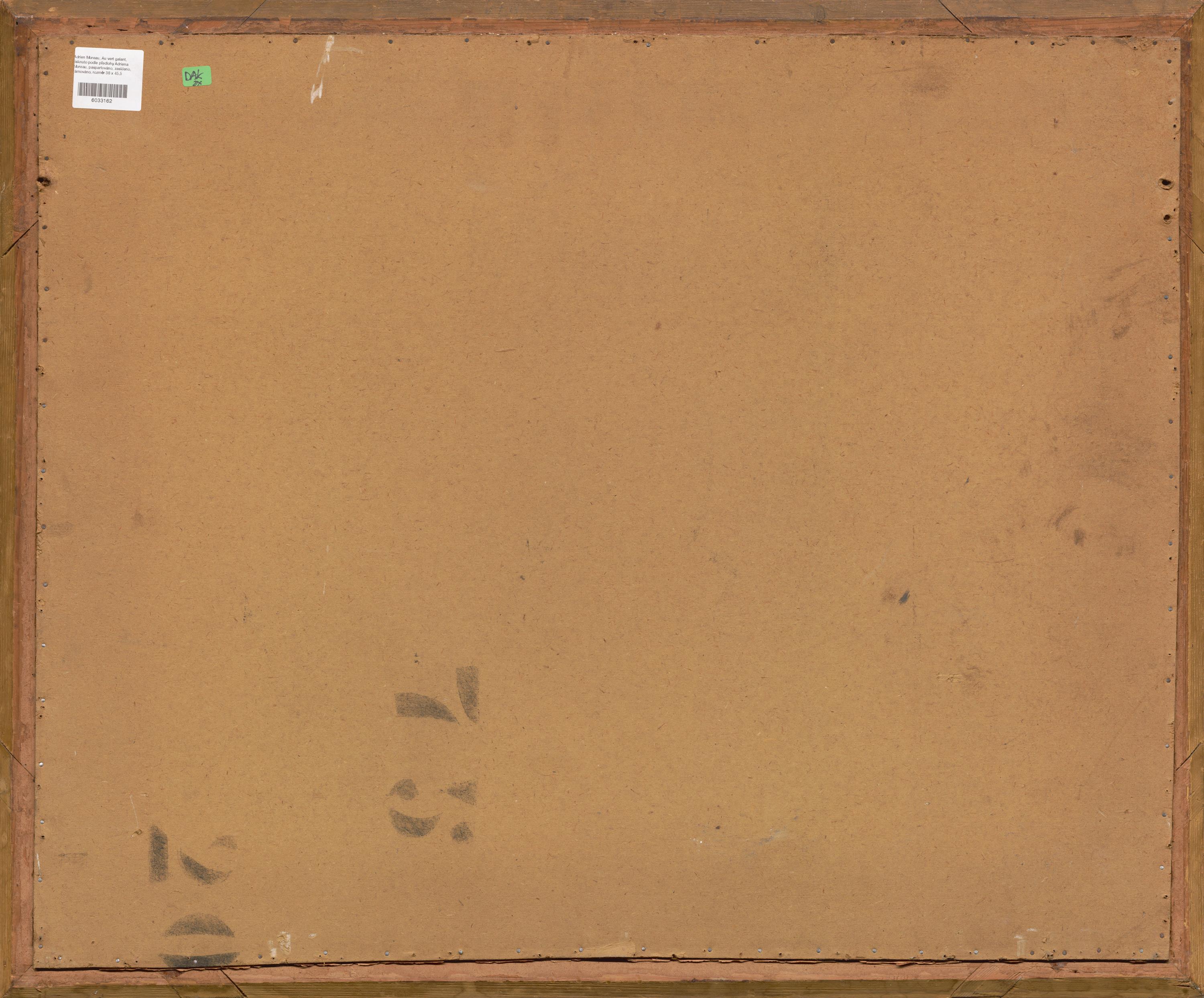 tisknuto podle předlohy Adriena Moreau, paspartováno, zaskleno, rámováno
