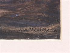 Signováno a datováno vpravo dole, paspartováno, zaskleno a rámováno. Ilustrace z knihy Antonína Zhoře - Kulhavý šermíř, z roku 1966 (str. 176). Přiložen originální certifikát Spolku přátel Kamila Lhotáka.
