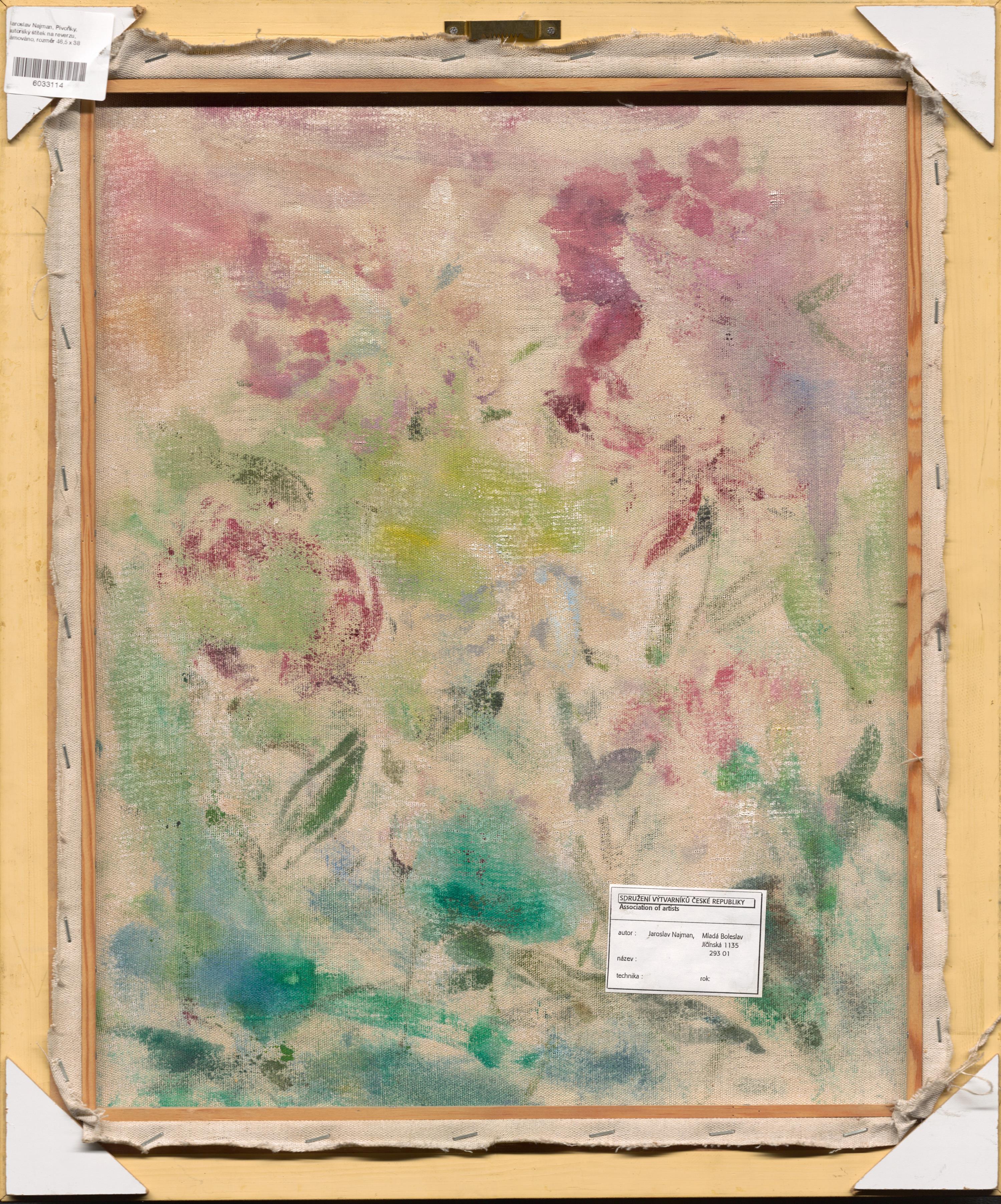 autorský štítek na reverzu, rámováno
