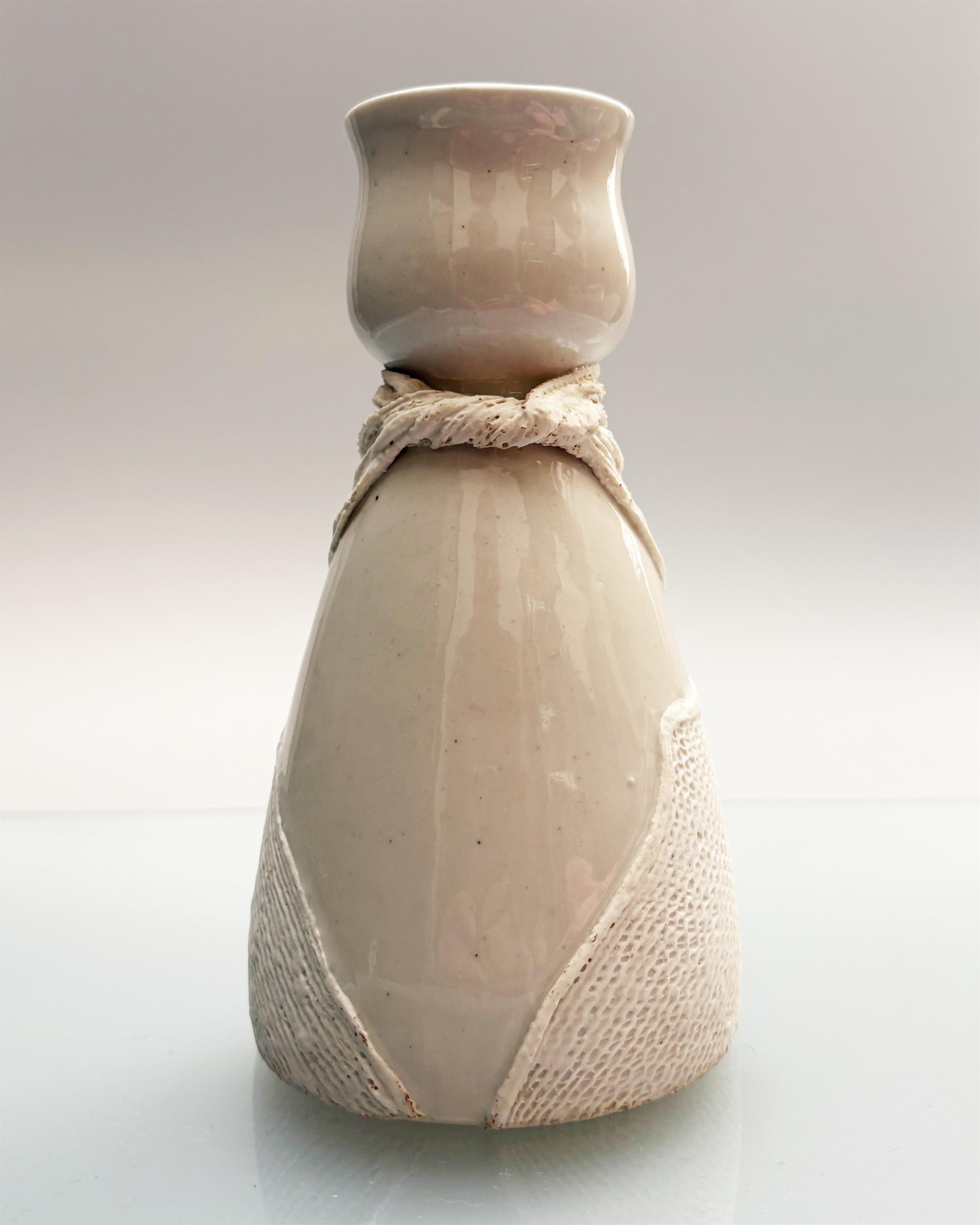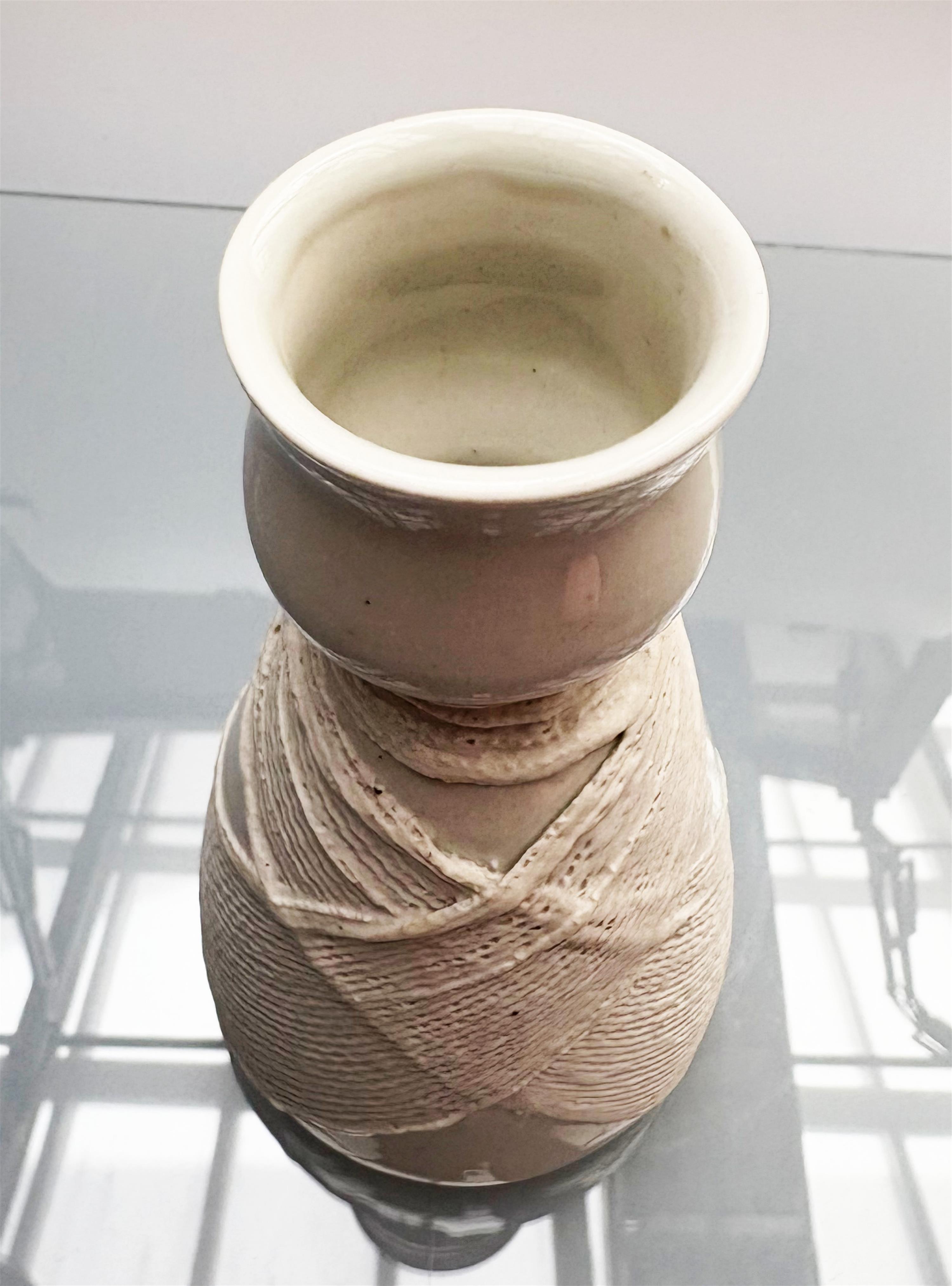 bílá váza ovinutá porcelánovým tylem, signováno zespodu