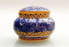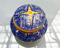Ručně malovaná doza s víčkem s modrým a okrovým dekorem