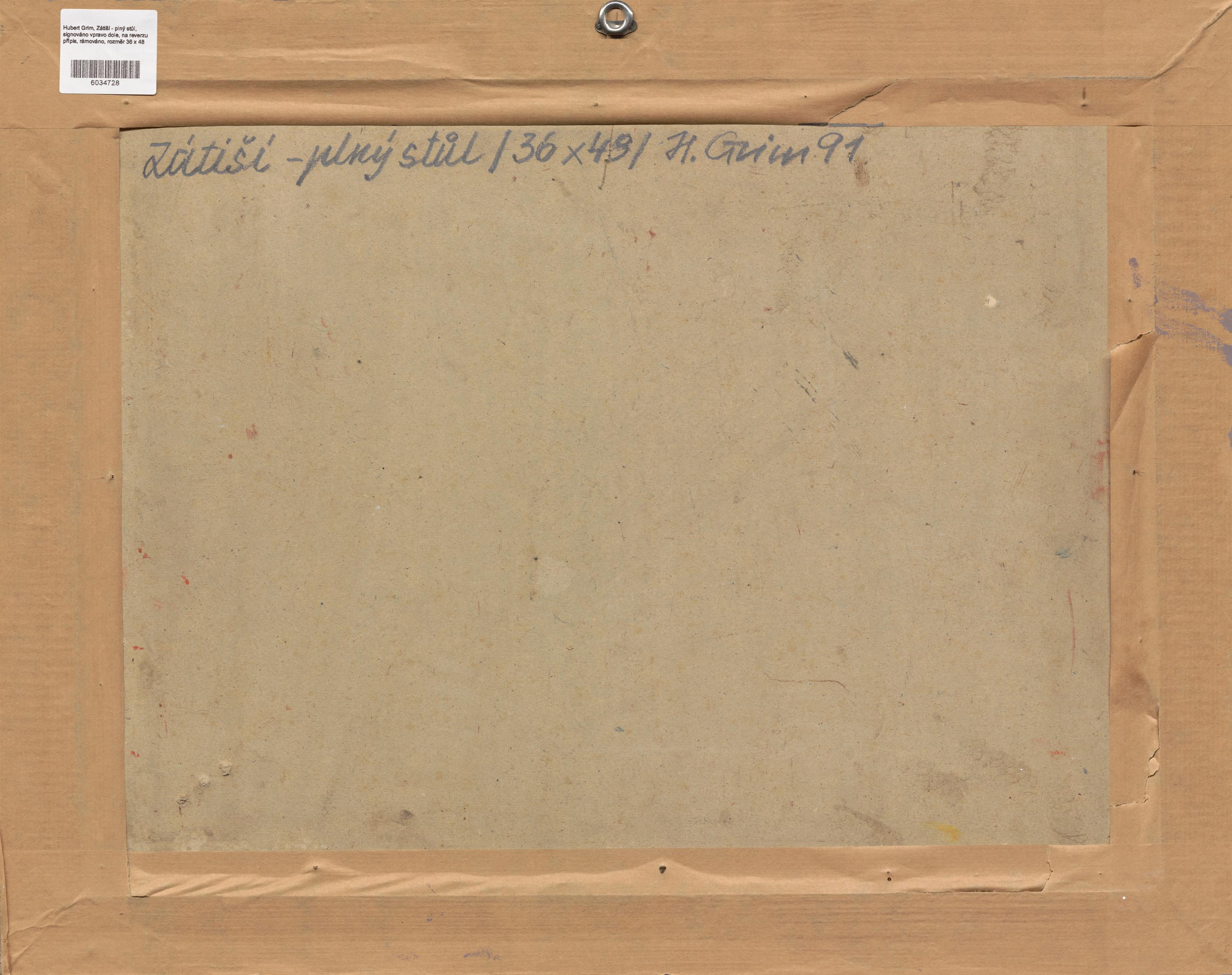 signováno vpravo dole, na reverzu přípis, rámováno