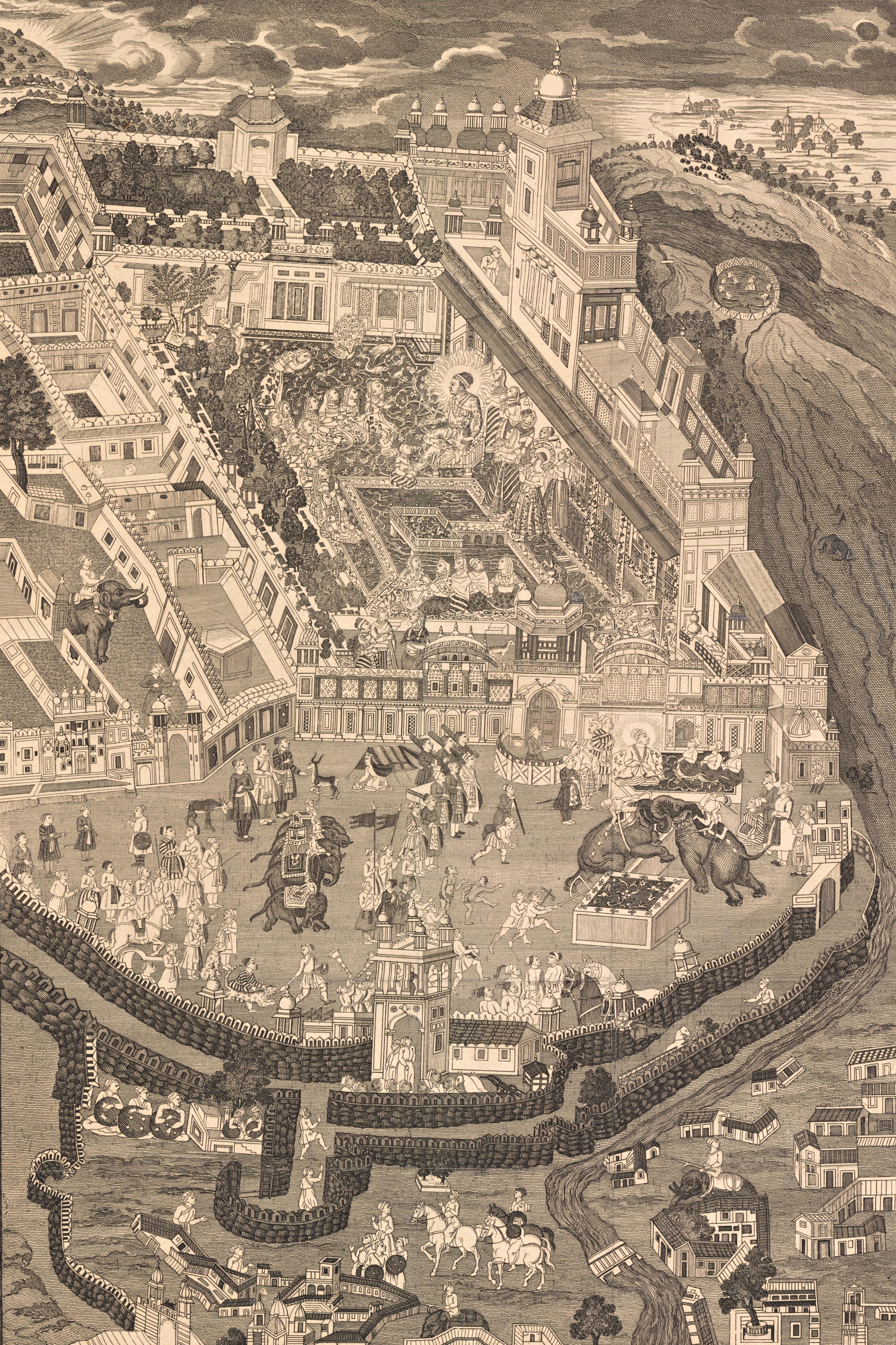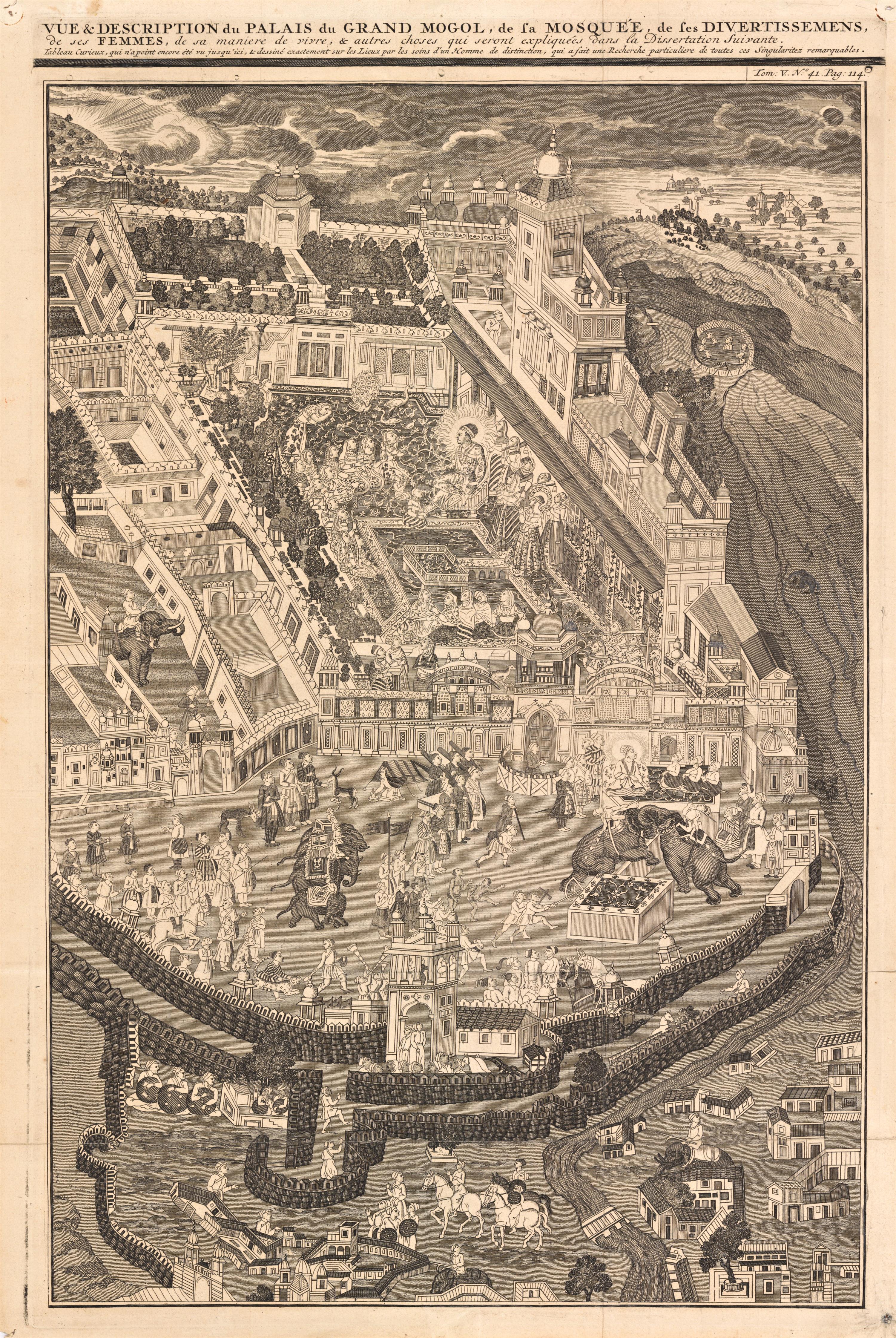 Palác a mešita Velkého Mogola – rytina od Chatelaina, Atlas Historique 1719