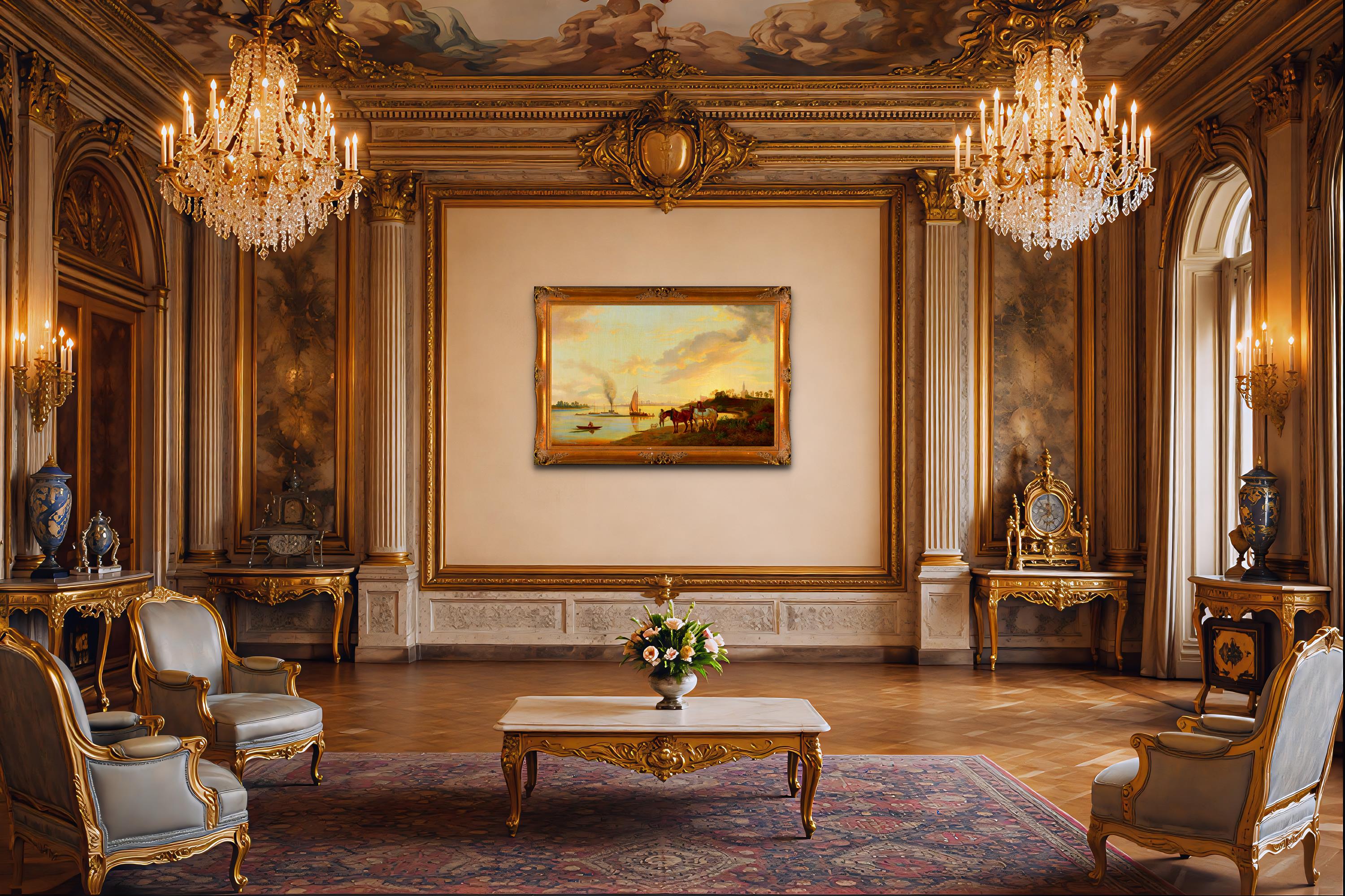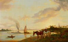 25. Lidé s koňmi na břehu