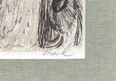 Signováno, paspartováno, zaskleno, rámováno. Použité techniky: litografie a kamenotisk.
