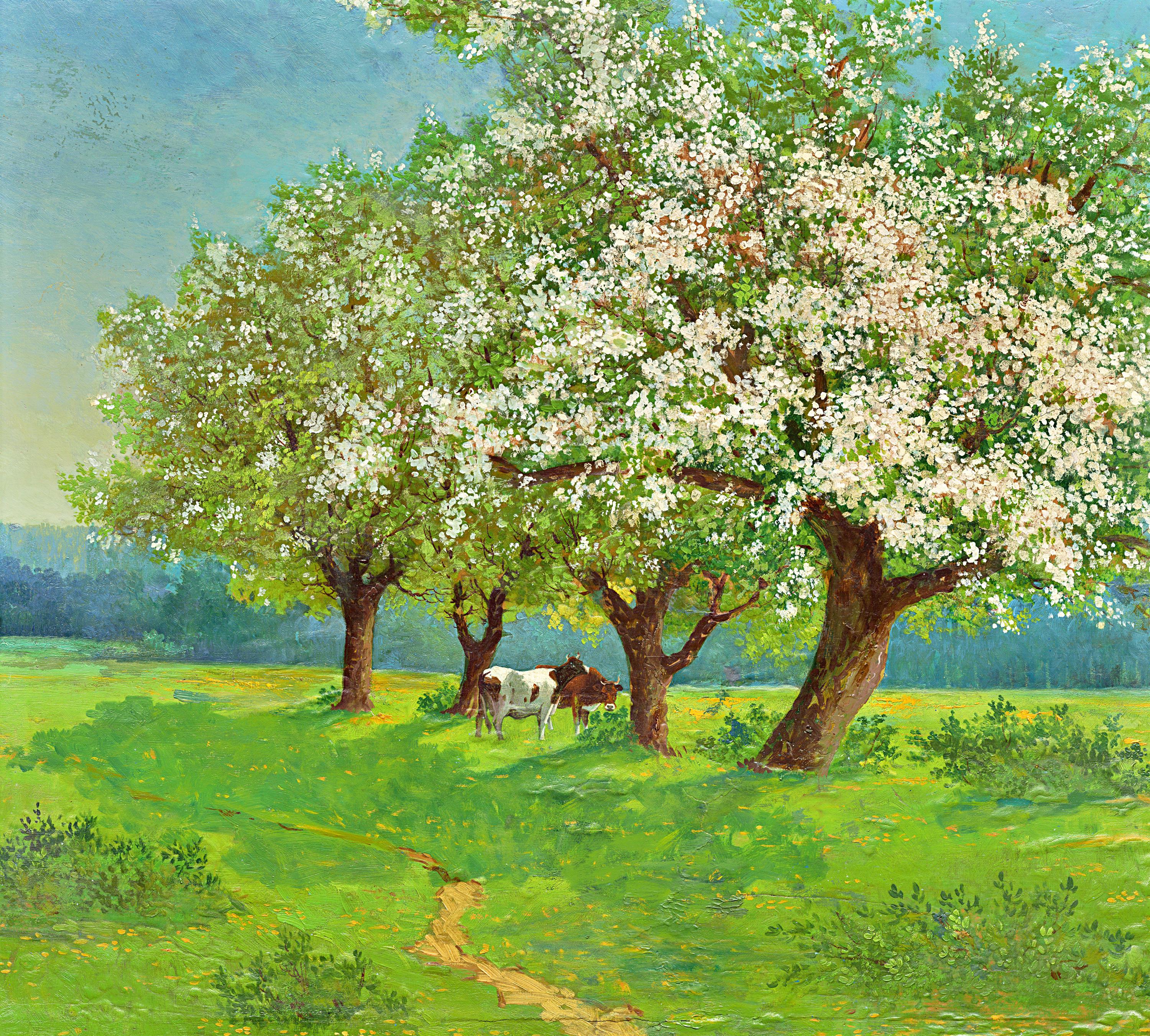 Krávy pod jabloněmi