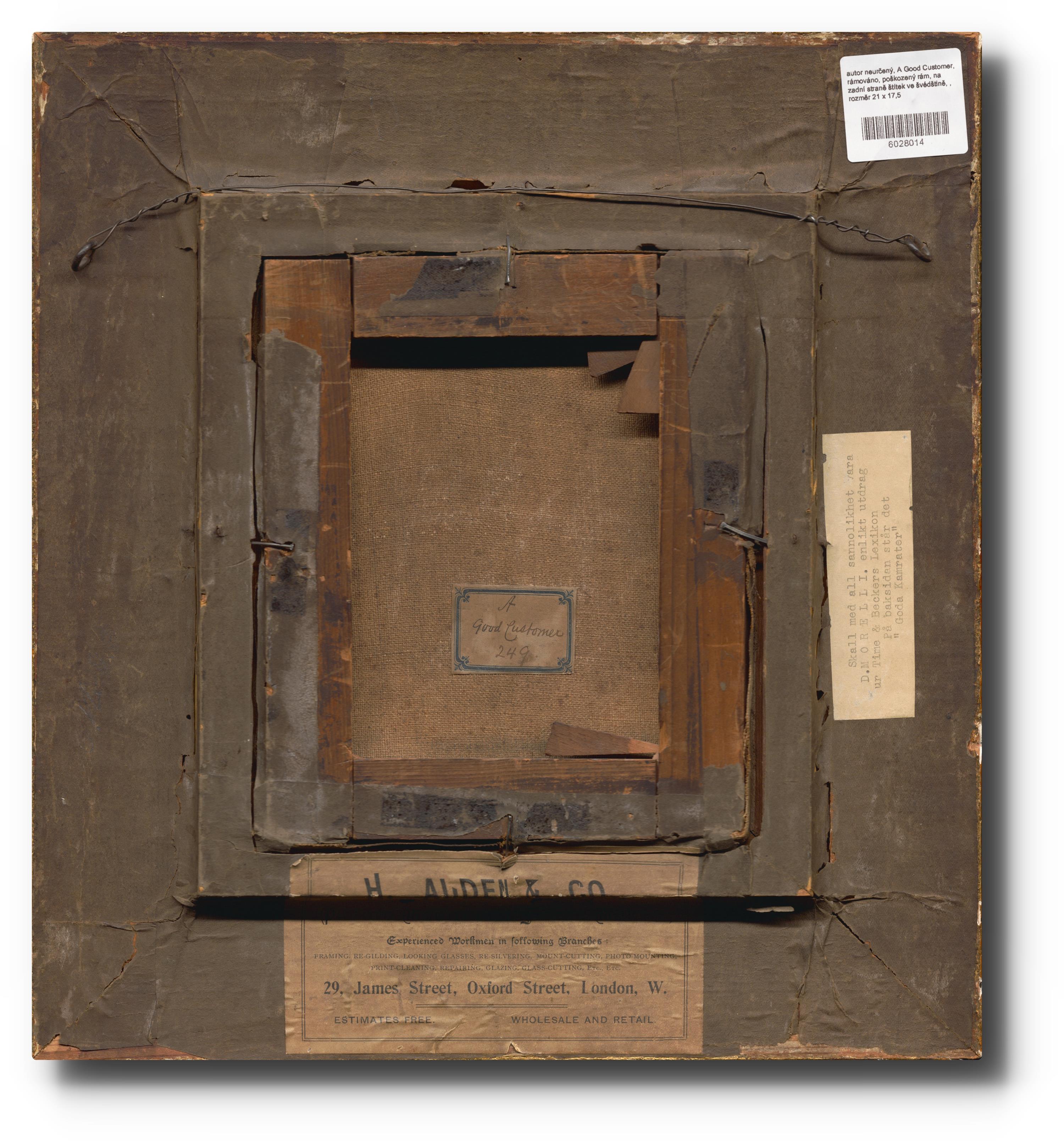 rámováno, poškozený rám, na zadní straně štítek ve švédštině,