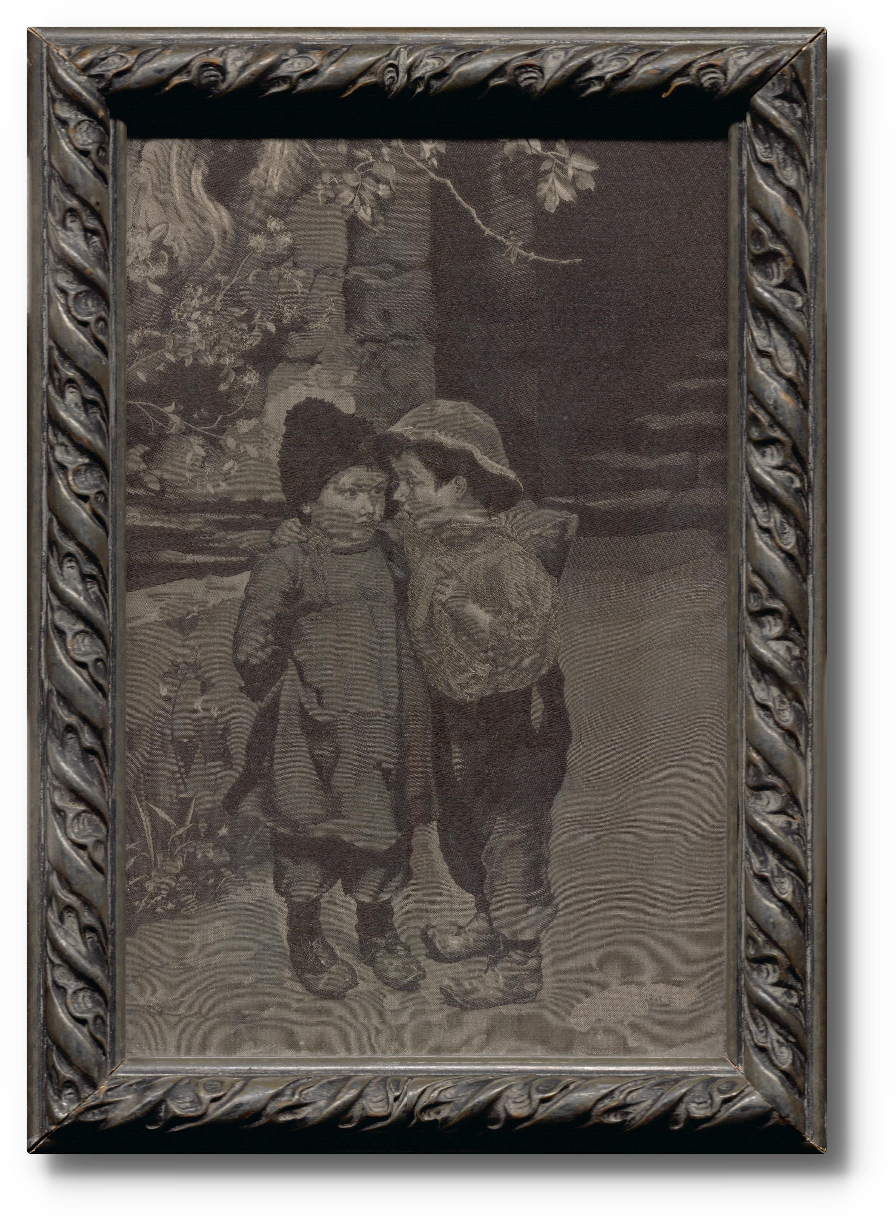 strojová výšivka, zaskleno, rámováno v dobovém rámu