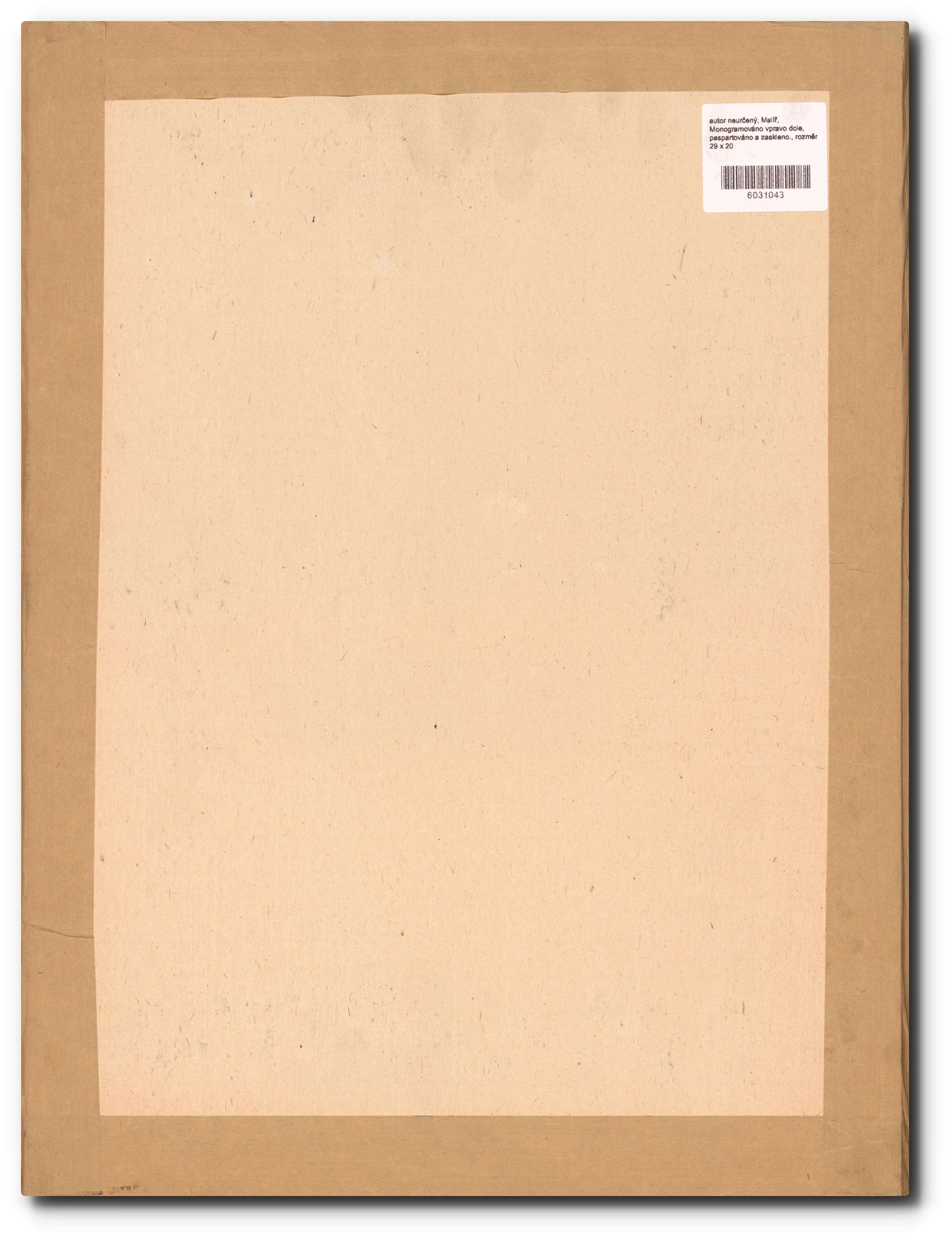 Monogramováno vpravo dole, paspartováno a zaskleno.