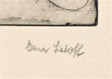 signováno tužkou vpravo dole pod grafikou, zaskleno, rámováno